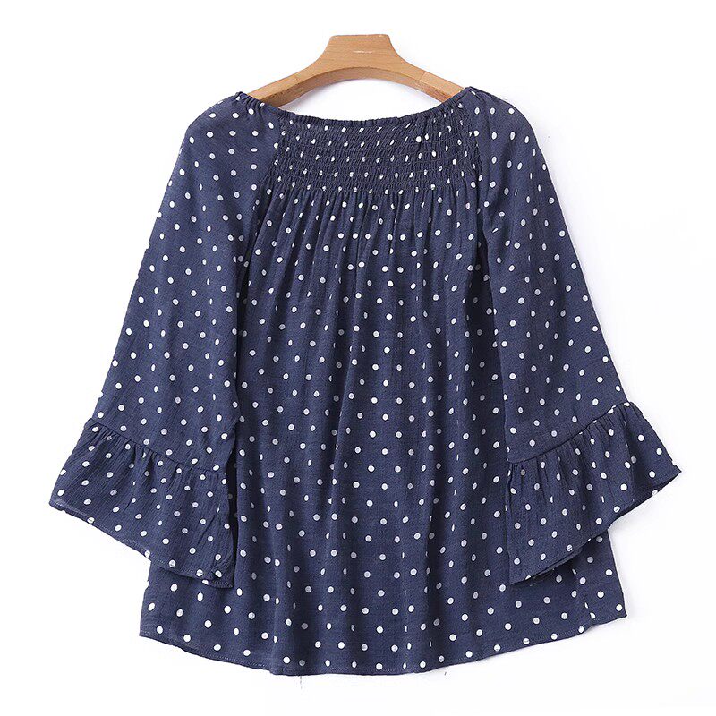 (Трансграничная торговля), футболка, летний модный мегафон, из хлопка и льна, цветочный принт, свободный крой, открытые плечи