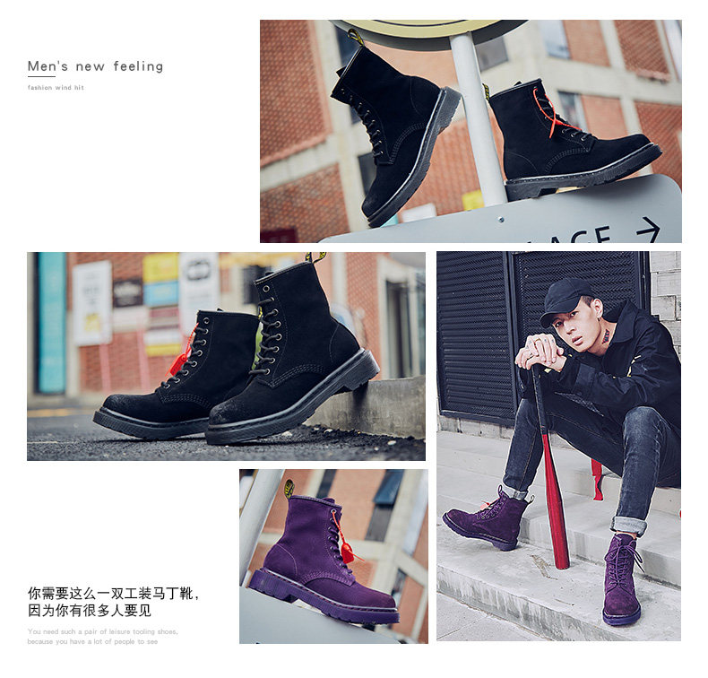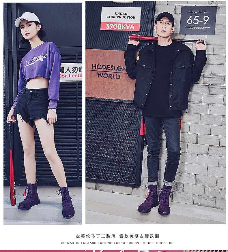 Martens, сиреневые короткие сапоги для влюбленных, ботинки подходит для мужчин и женщин, 2023, из натуральной кожи, средней длины