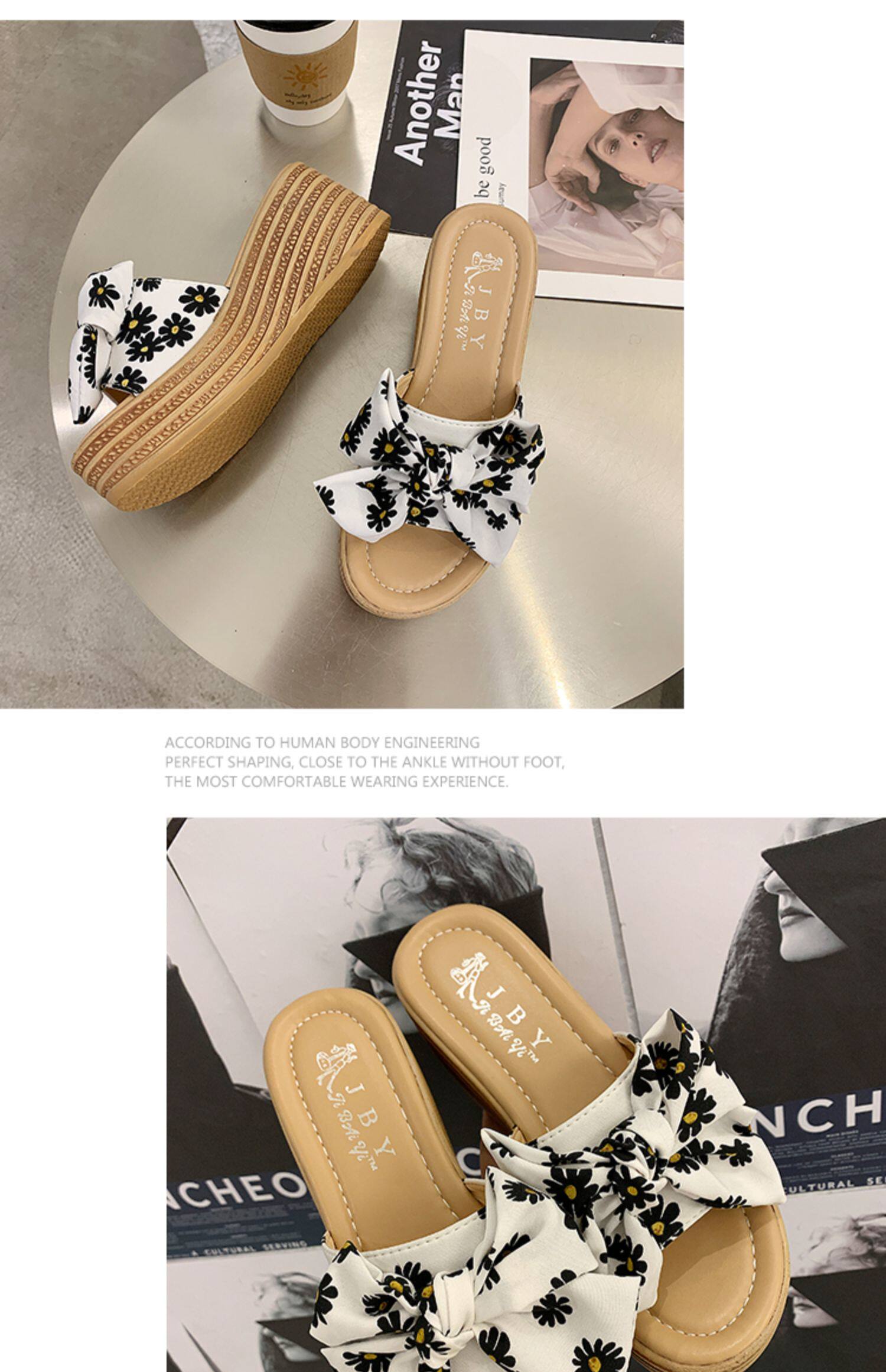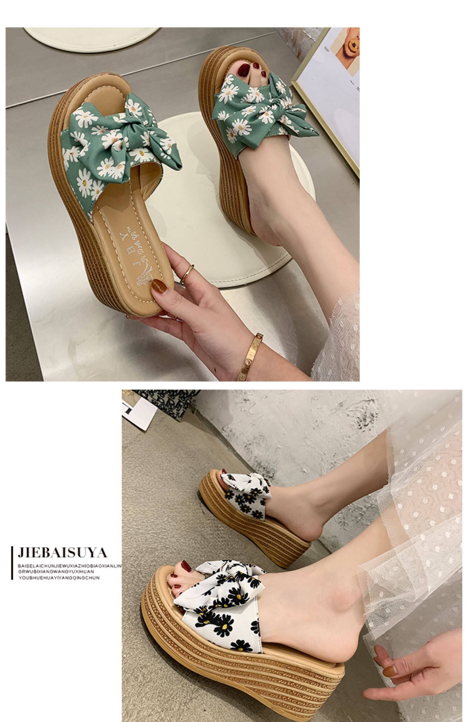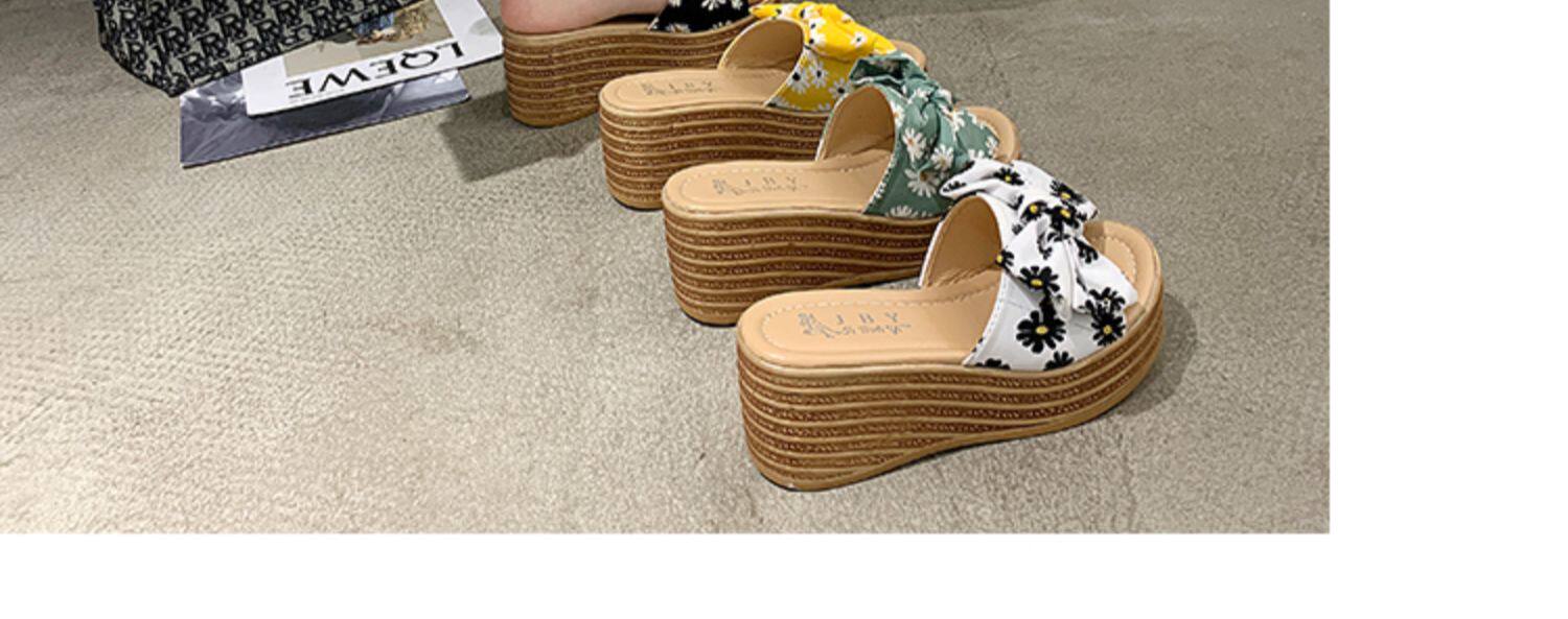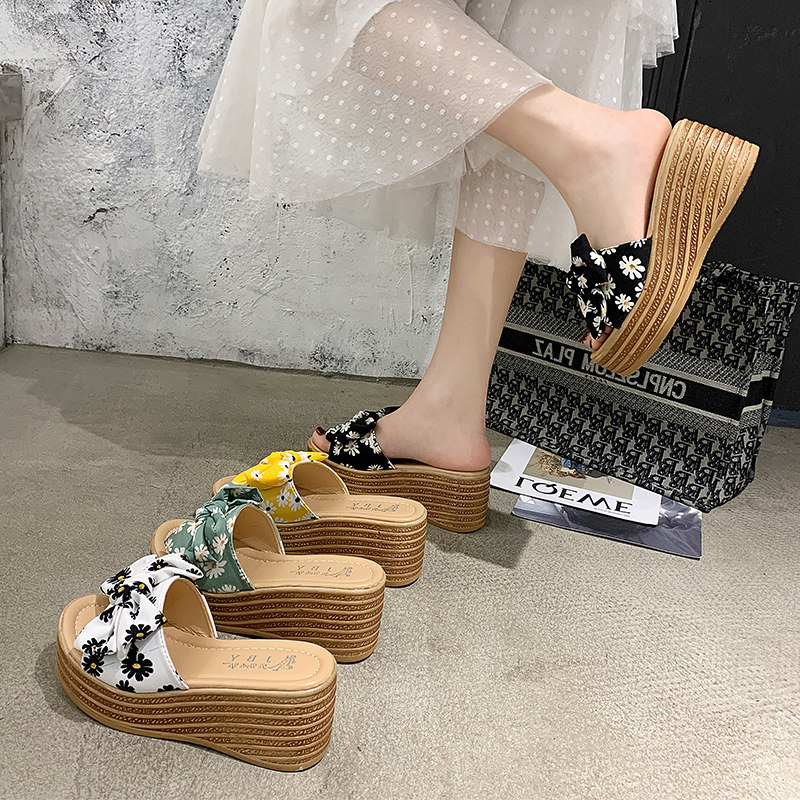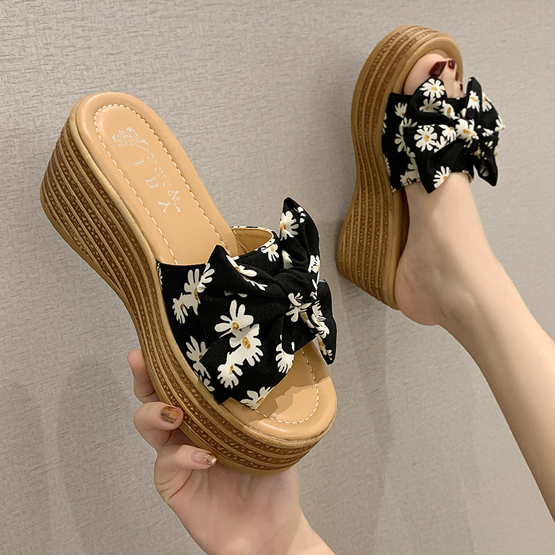 Пляжные тапочки, модная высокая обувь, нескользящие слайдеры на платформе с бантиком, популярно в интернете