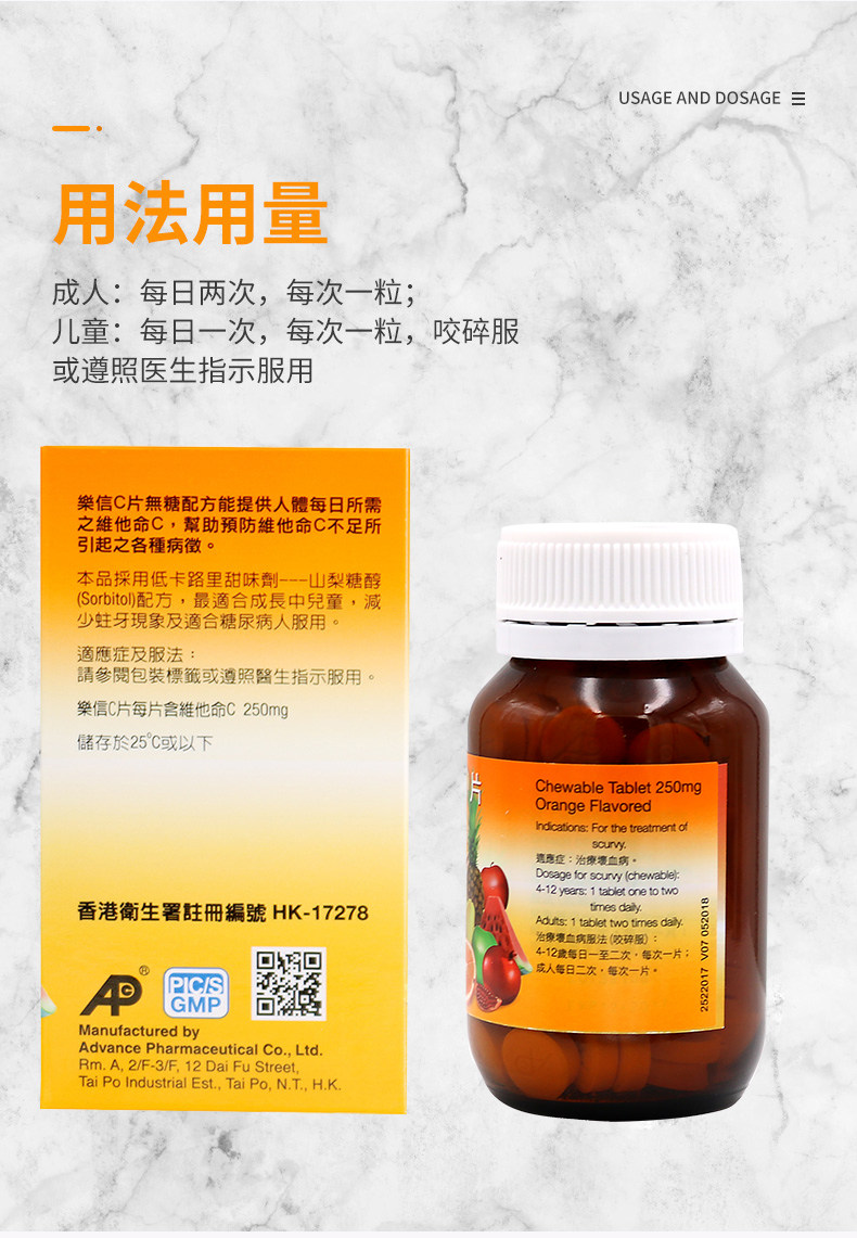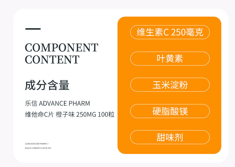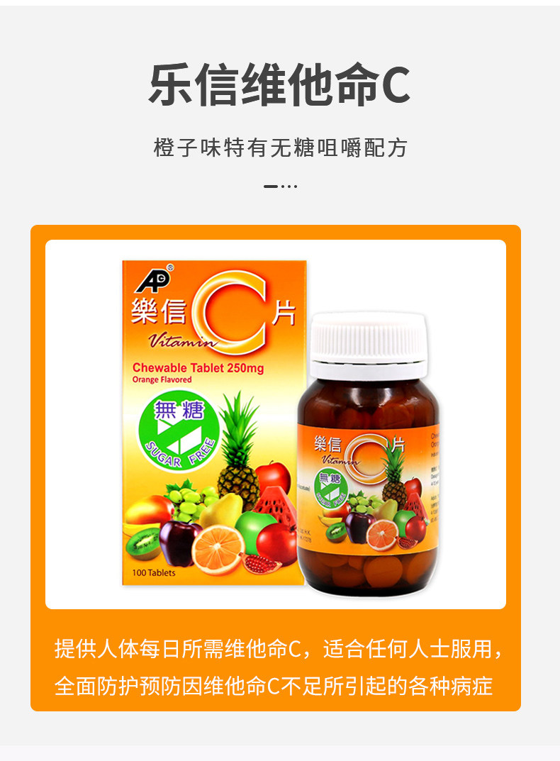 乐信 Аванс фарм витамин С таблетка апельсиновый аромат 250 мг 100 зерна витамина С жевает таблетки