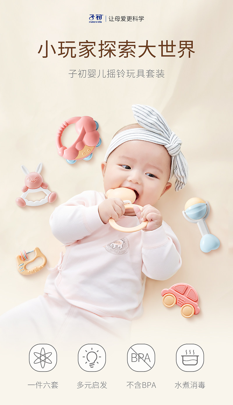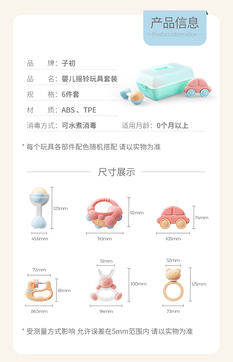 Погремушка, игрушка, комплект, детский прорезыватель для новорожденных для раннего возраста, 6 шт, 0-3-6-12 мес.
