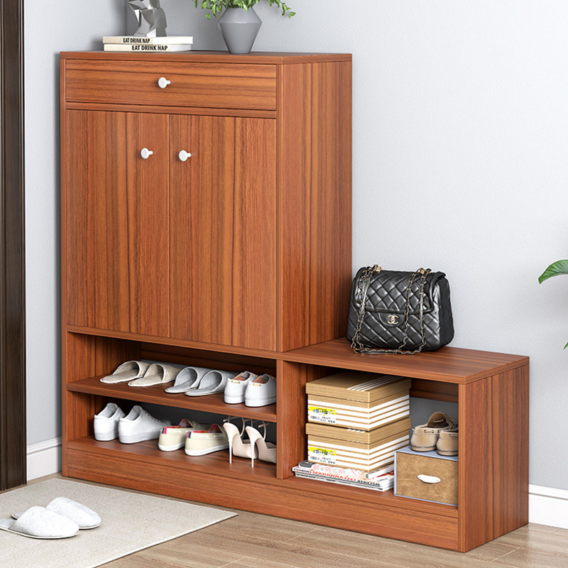 Шкаф для обуви для домашнего использования в помещении, красивый у двери, с табуретом для обуви, который можно разместить на двери, входной шкаф большой вместимости, простая антистойкая полка для обуви из цельного дерева.
