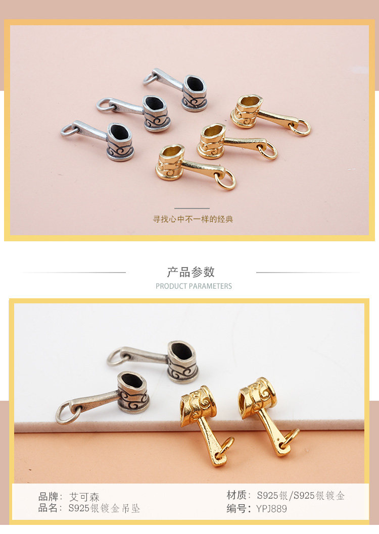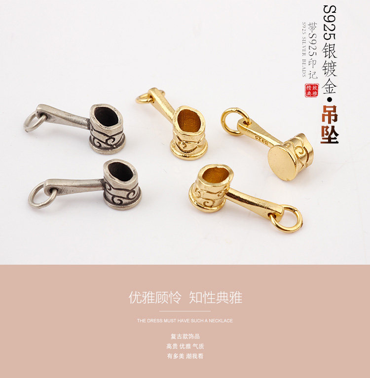 S925, золотая вода, ретро ведро, подвеска, брелок, мобильный телефон, ручка, браслет, серьги, аксессуары, серебро 925 пробы