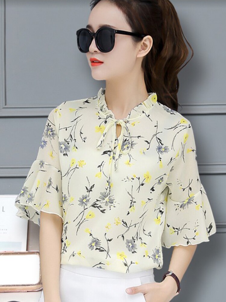 Летняя шифоновая футболка с коротким рукавом, 30-40-50 лет