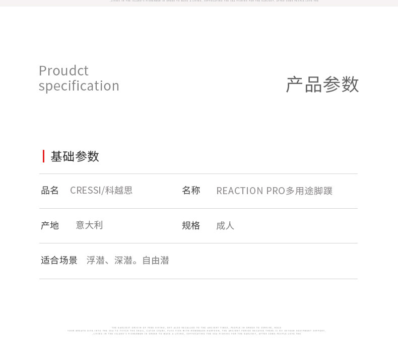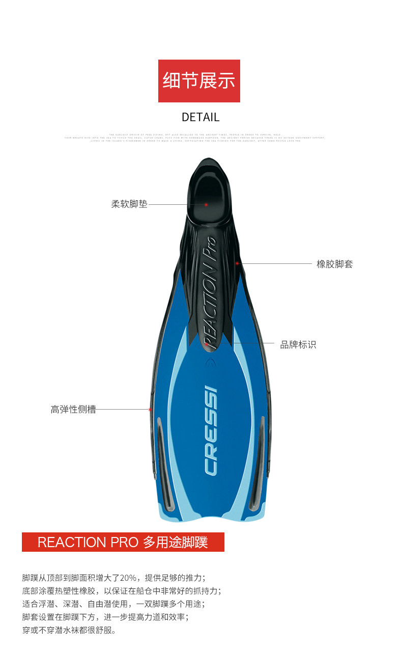 Итальянская реакция Cressi Pro Freebody Casting Foot Water Punge Punge Water Diving Skill Skill Professional Equipment