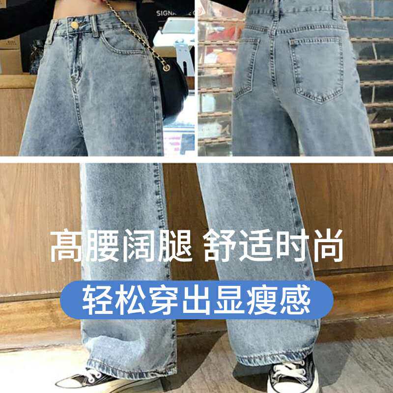 Джинсы, летние штаны для школьников, 2020, в корейском стиле, высокая талия, большой размер, свободный прямой крой
