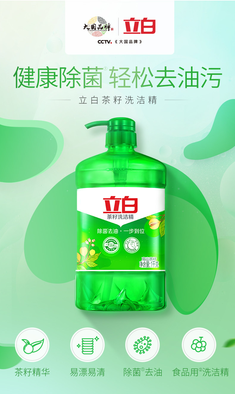 立白 Жидкость для мытья посуды с семенами чая 1 кг*2 для бытового использования без какого -либо повреждения рук и доступных фруктов и овощей