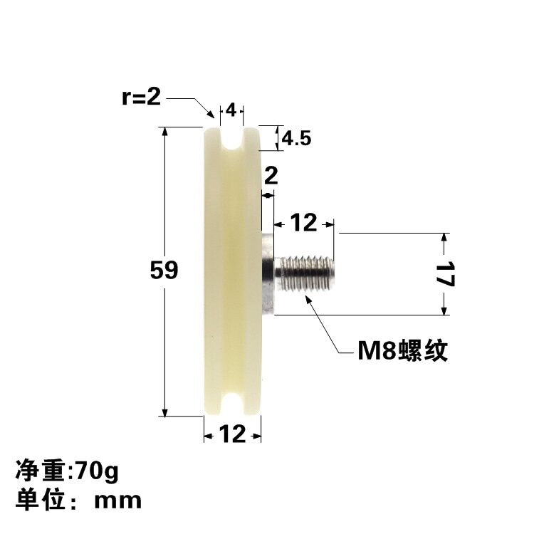 6200 подшипника Пластиковая пластиковая нейлоновое колесо PA6 -устойчивое колесо R2.