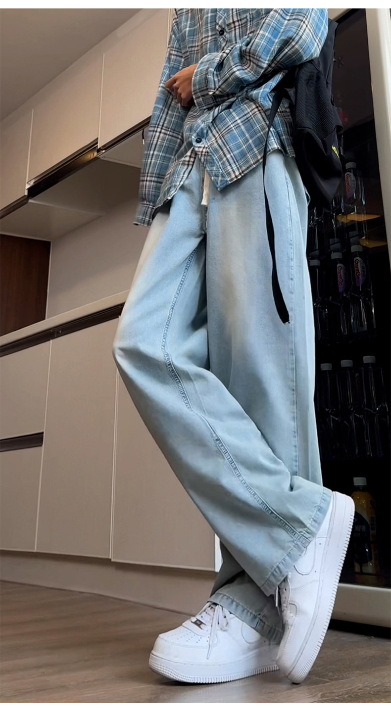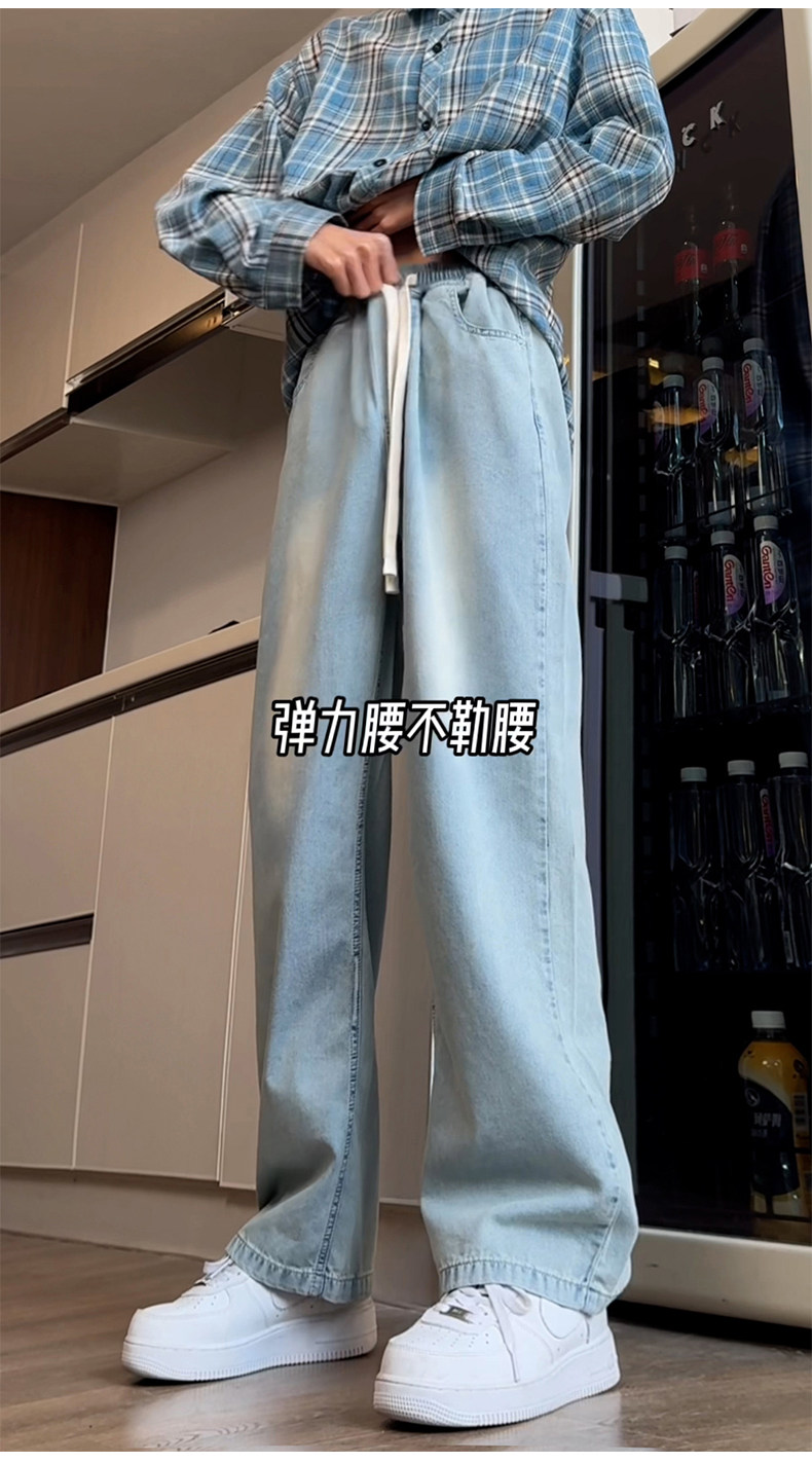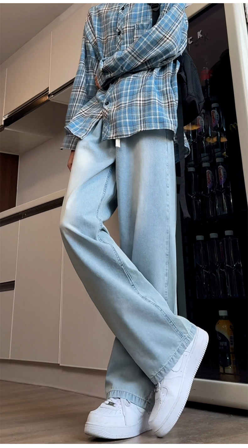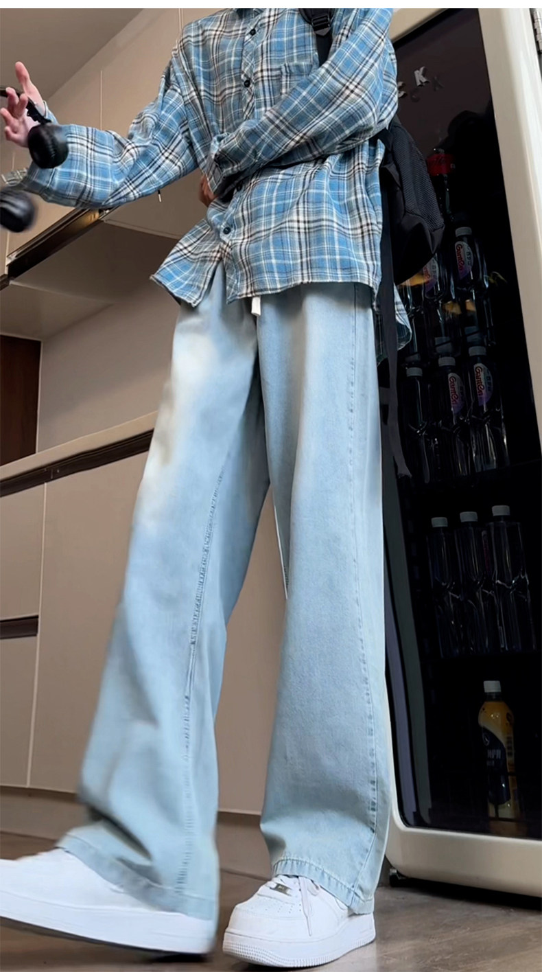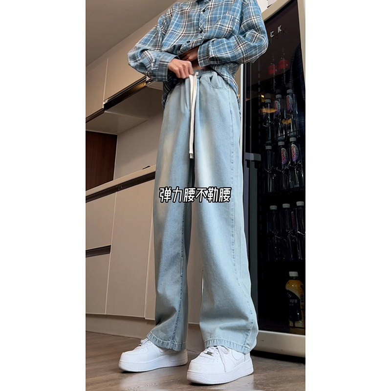 Синие осенние демисезонные джинсы, штаны, большой размер, в американском стиле, свободный прямой крой