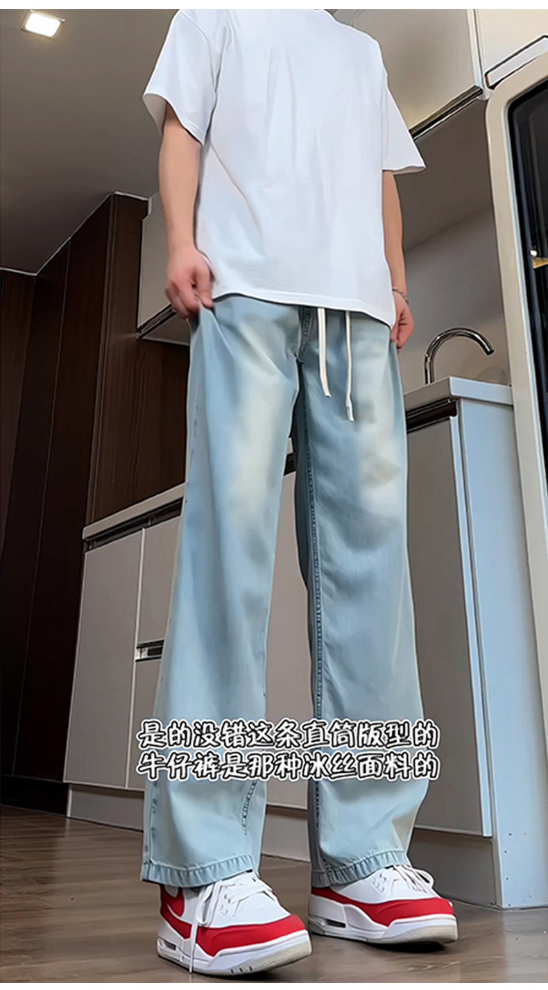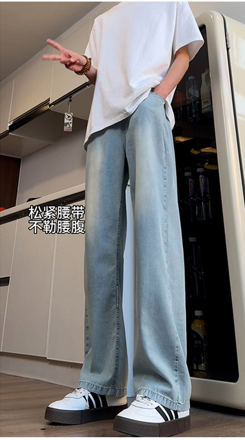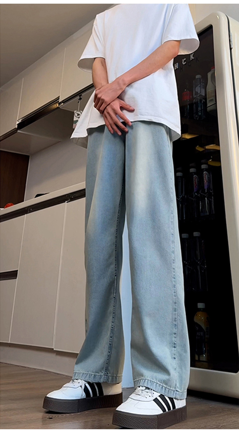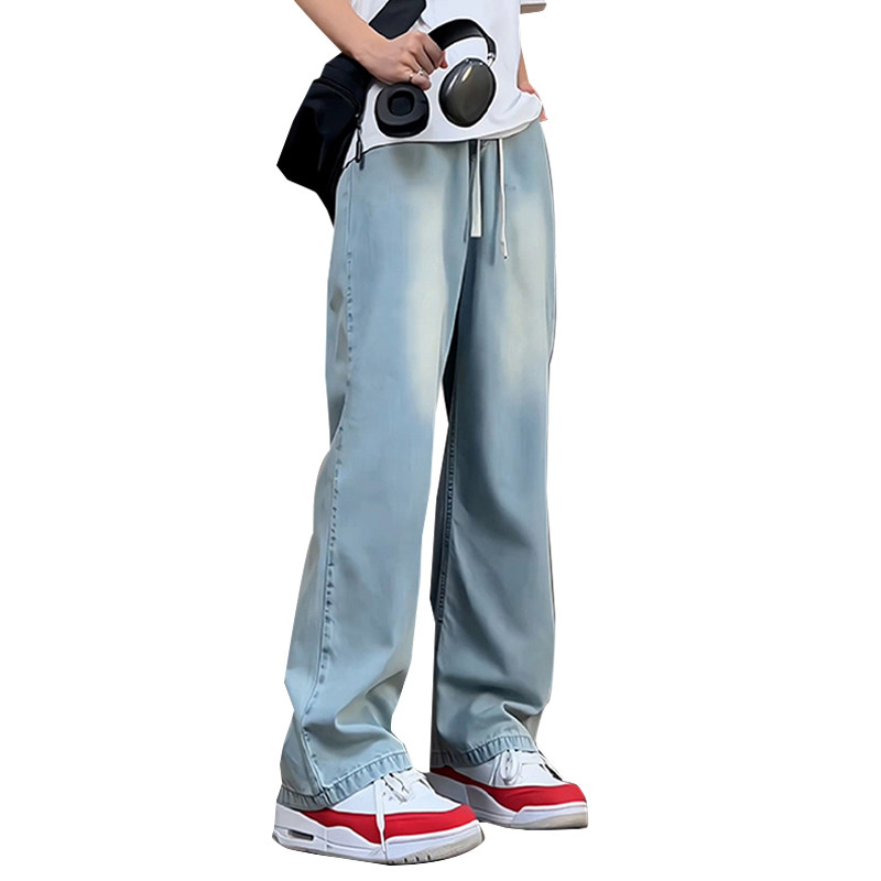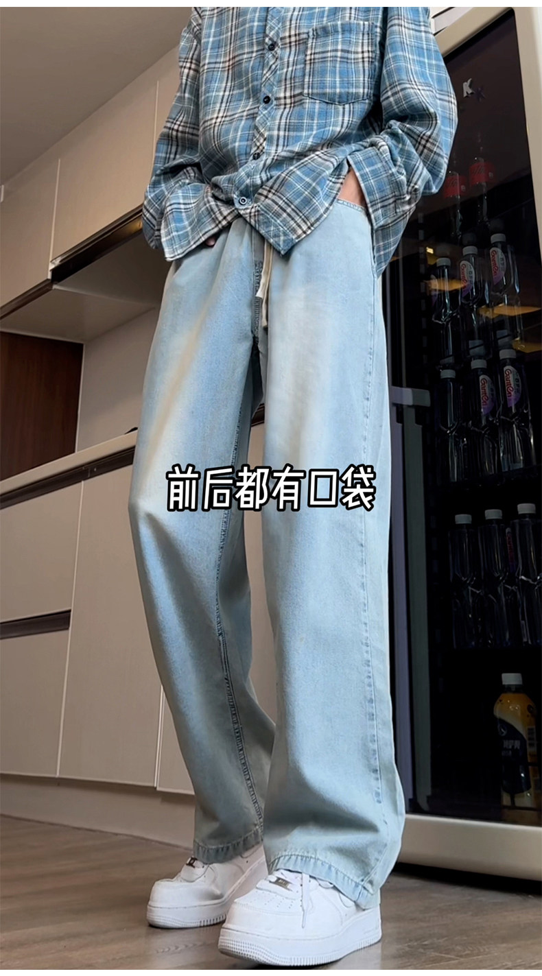 Синие осенние демисезонные джинсы, штаны, большой размер, в американском стиле, свободный прямой крой