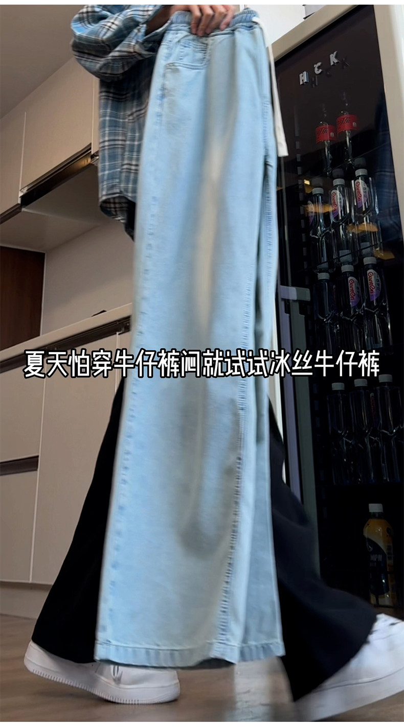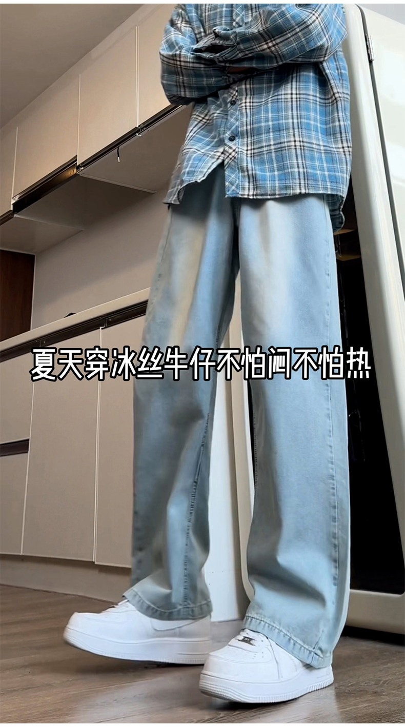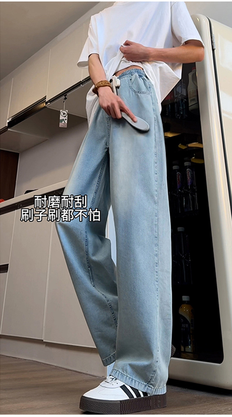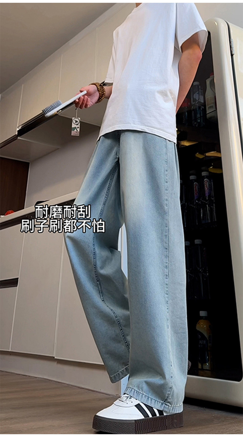 Синие осенние демисезонные джинсы, штаны, большой размер, в американском стиле, свободный прямой крой