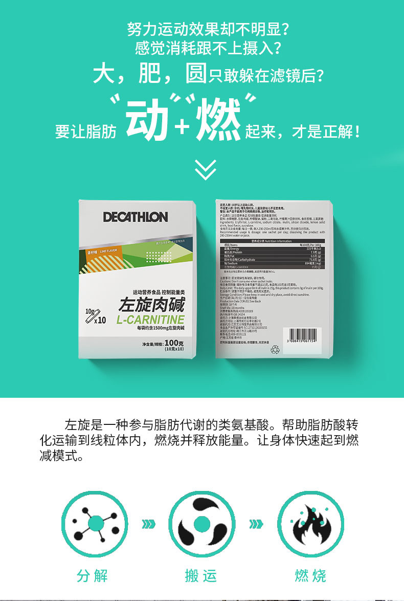 [Доставка] 60 Портативный порошок и кропо из декатлона L -Карнитин Официальный флагманский магазин