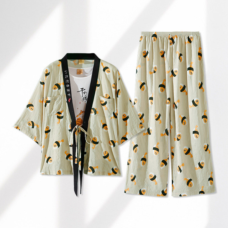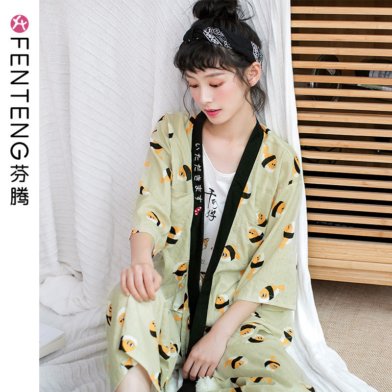芬腾 Хлопковая тонкая японская пижама, штаны, майка, комплект, 3 предмета