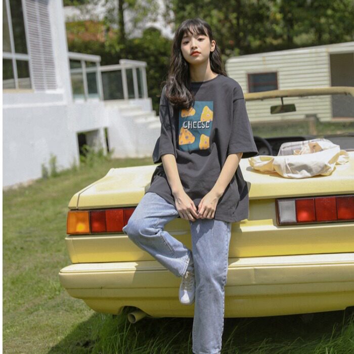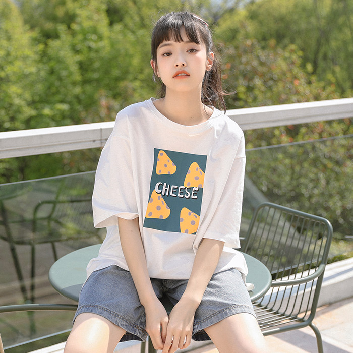 Белая футболка, тонкая брендовая летняя одежда, в корейском стиле