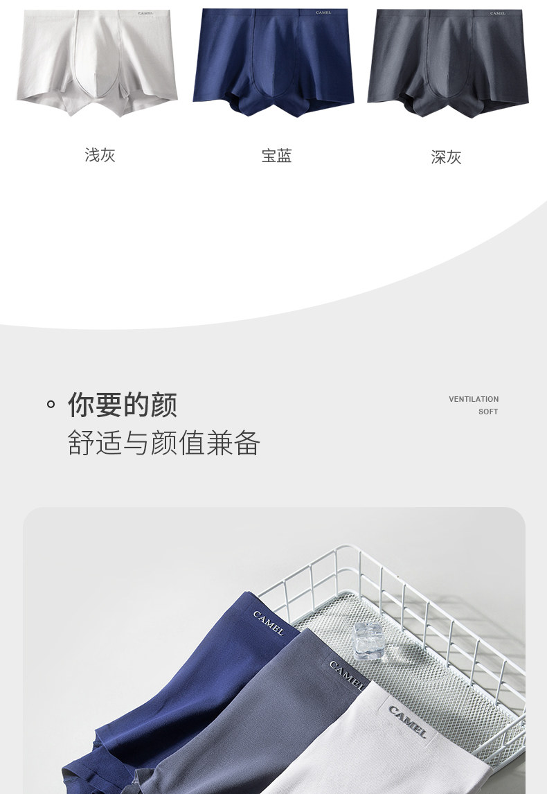 Верблюдное нижнее белье 3 куска мягкого льда, без трассировки, освежающие, удобные, дышащие летние плоские брюки