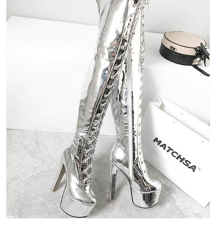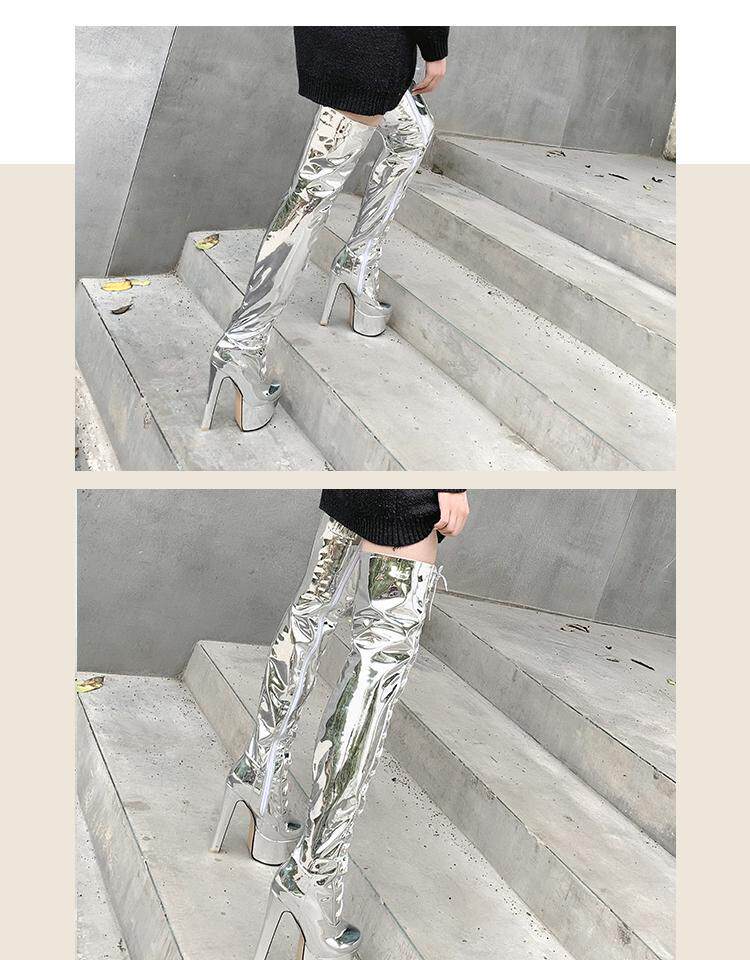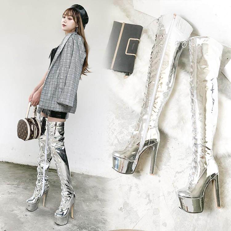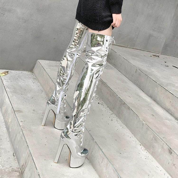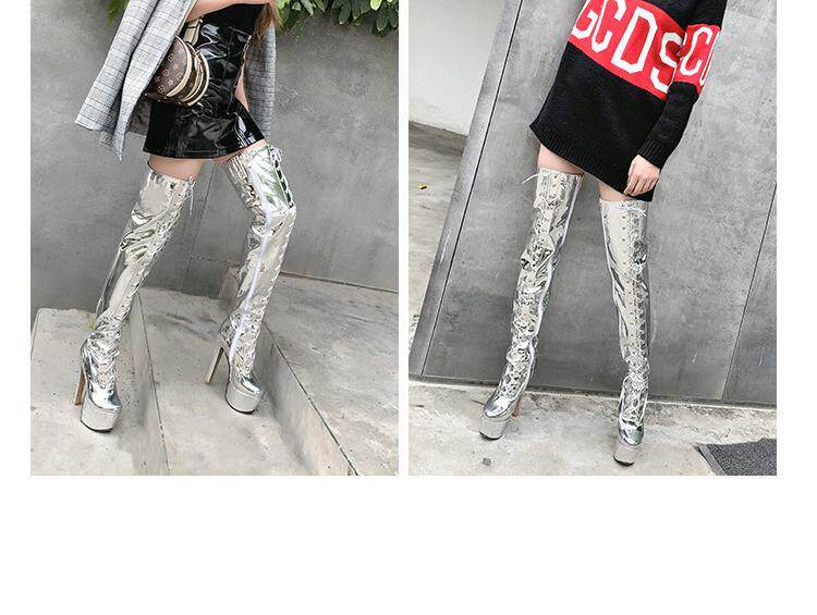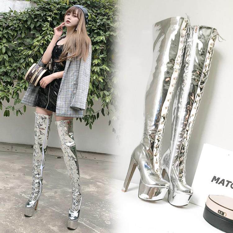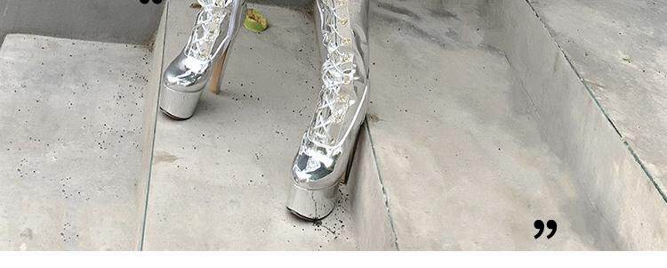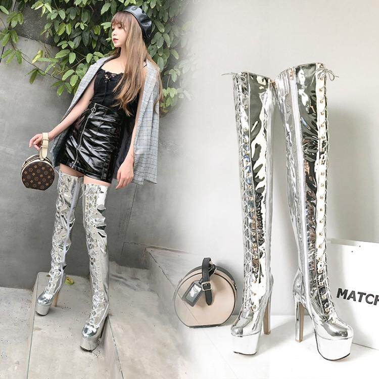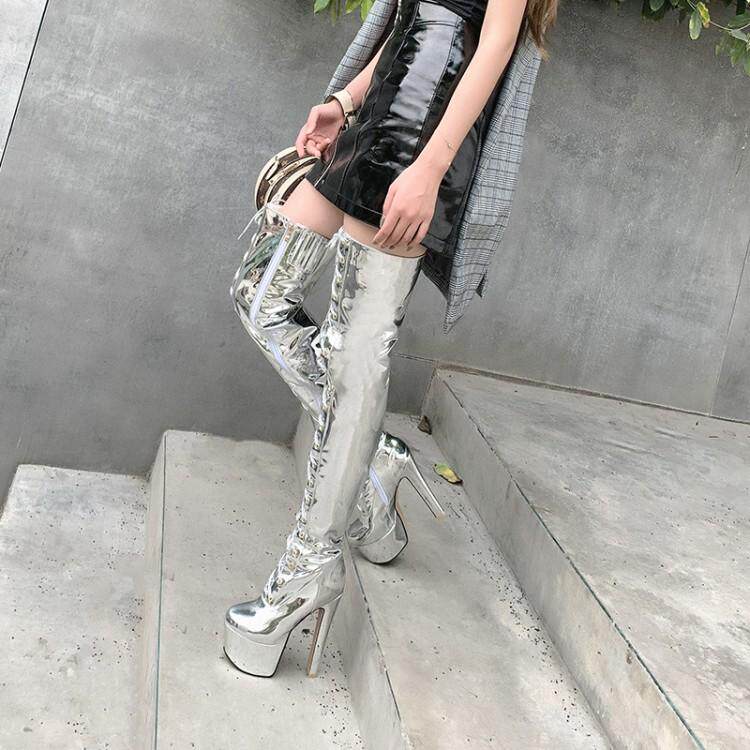 Европейские и американские новые лакированные кожаные ботинки для танцев на шесте, белые женские сапоги, водонепроницаемые сапоги выше колена на платформе, на супер высоком каблуке, высокие сапоги на толстом каблуке
