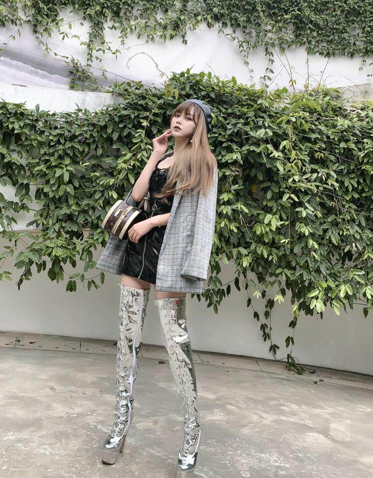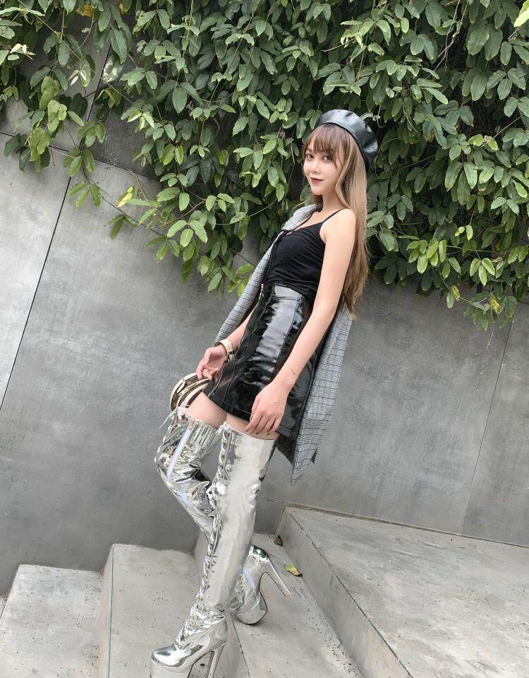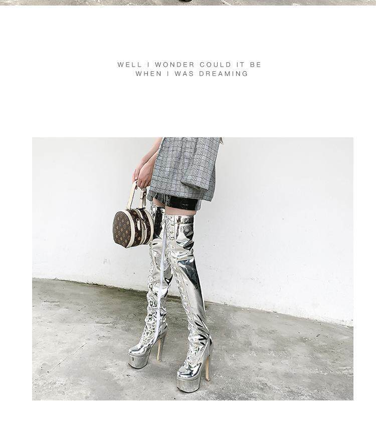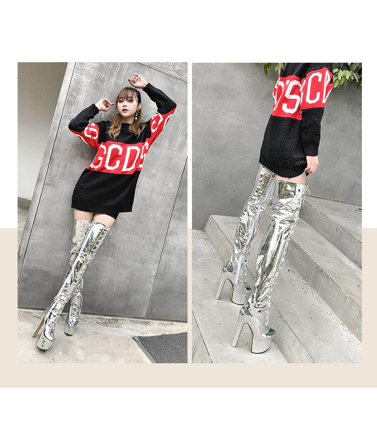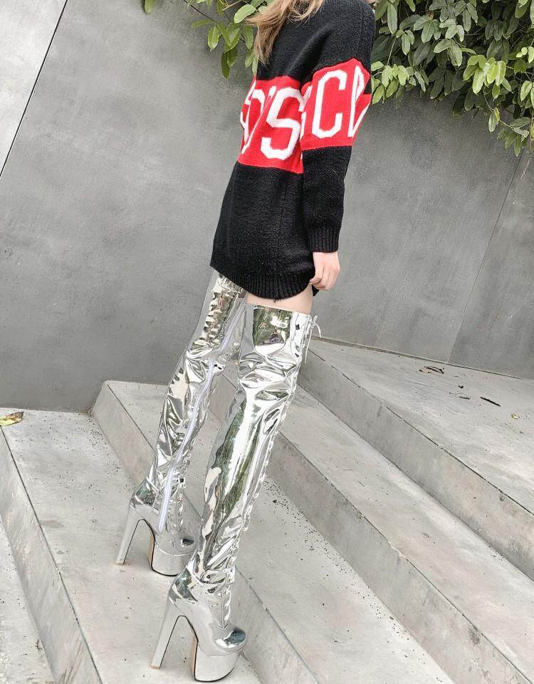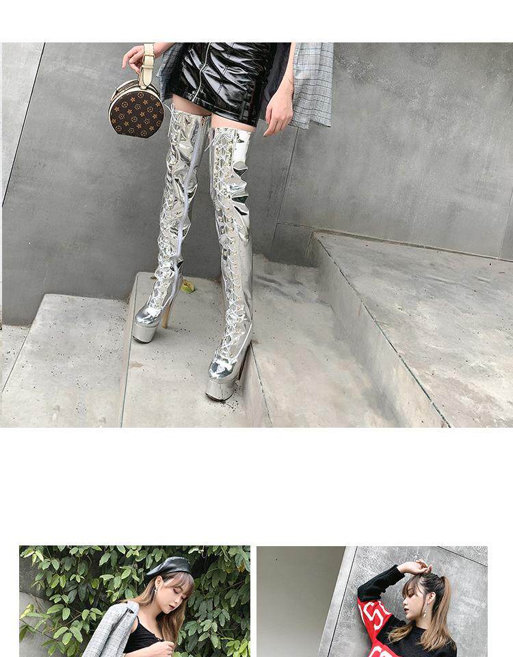 Европейские и американские новые лакированные кожаные ботинки для танцев на шесте, белые женские сапоги, водонепроницаемые сапоги выше колена на платформе, на супер высоком каблуке, высокие сапоги на толстом каблуке