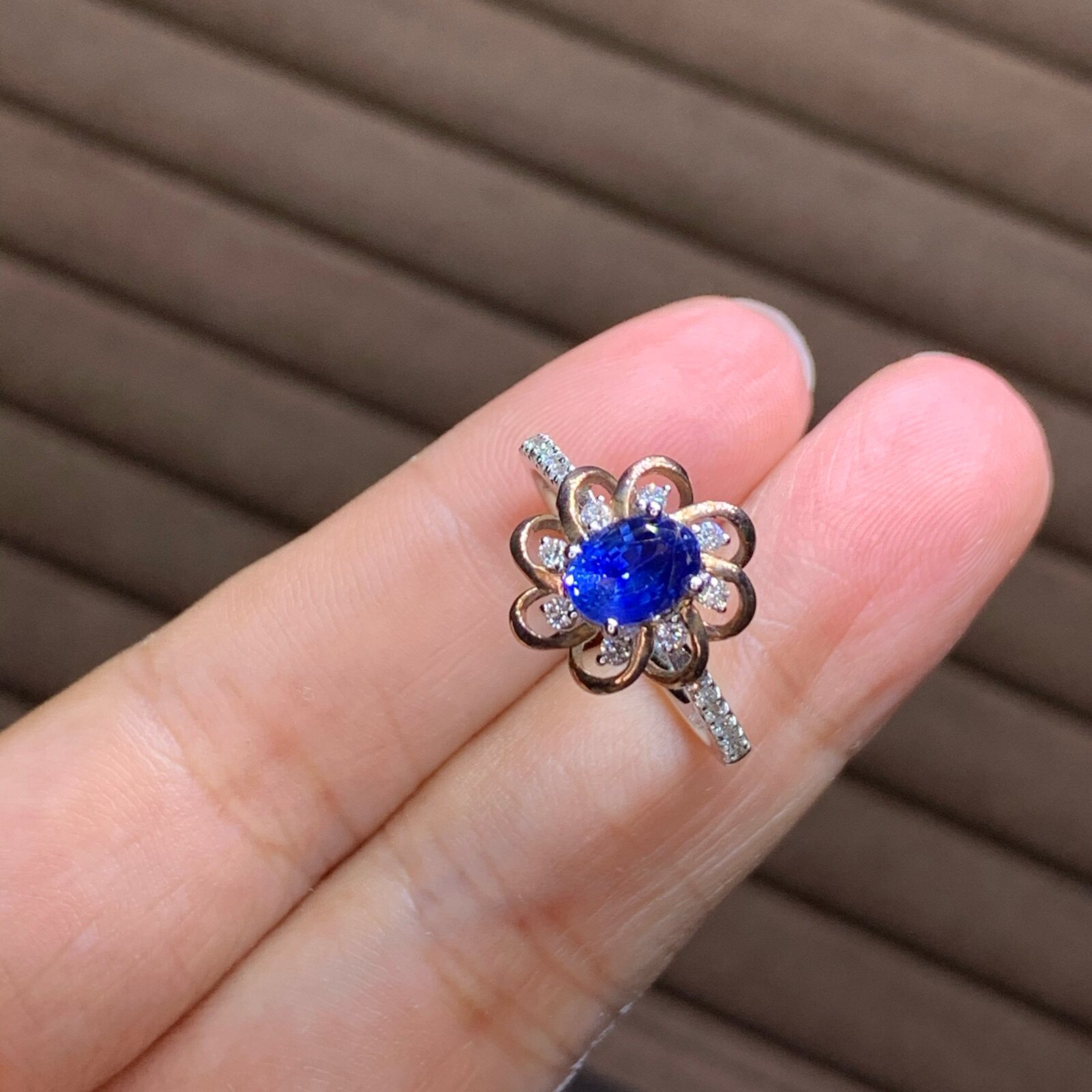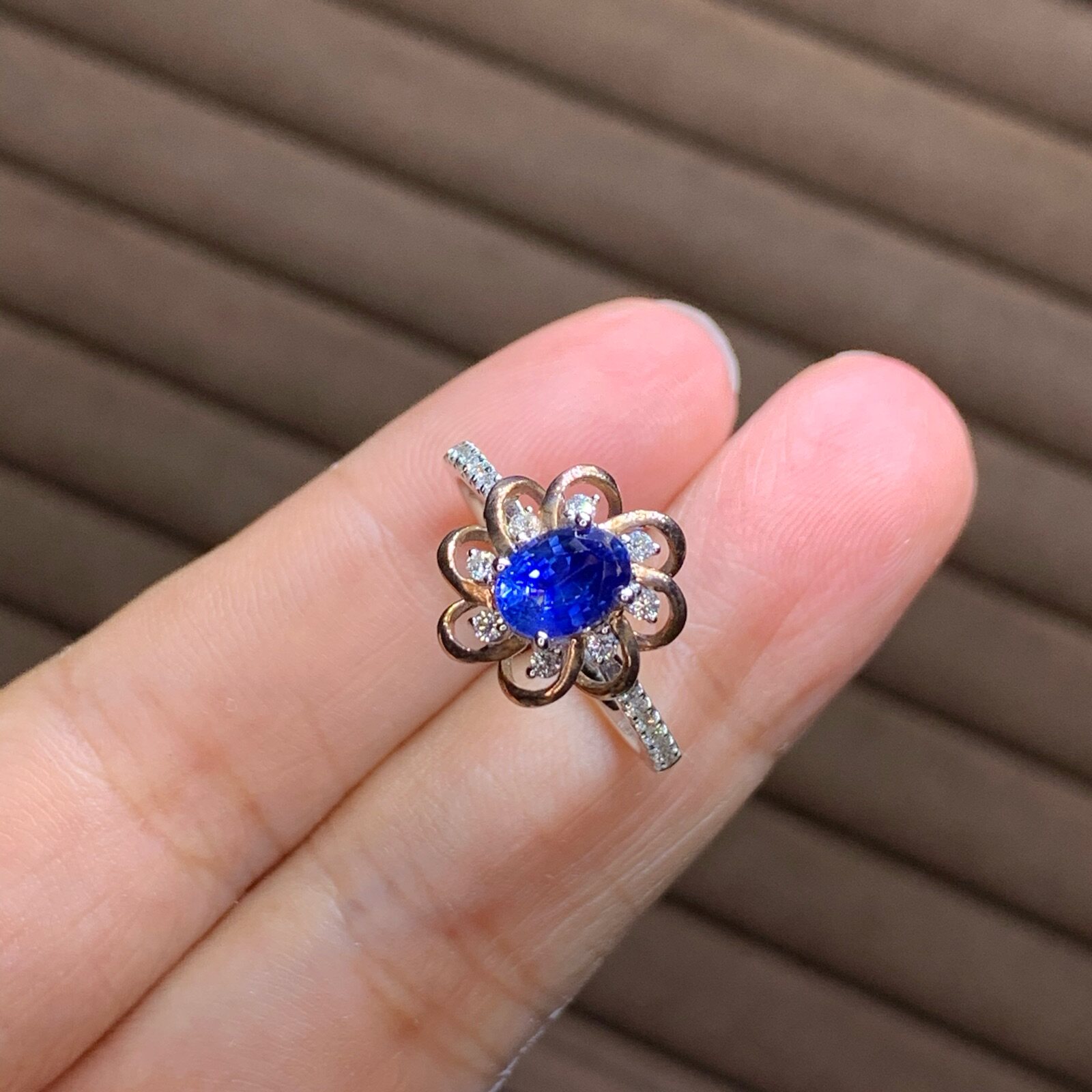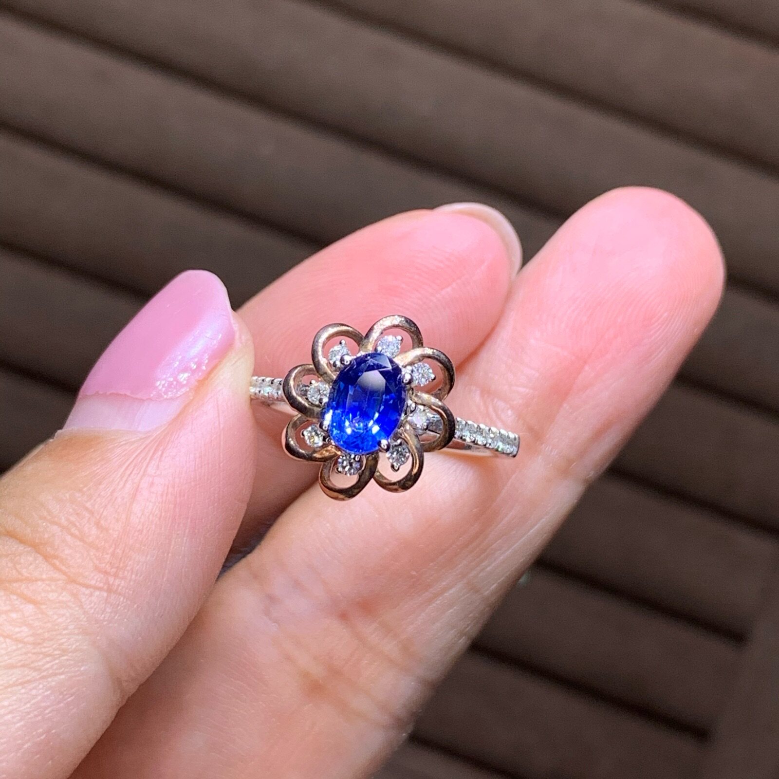 Натуральное васильковое сапфировое золотое платиновое бриллиантовое кольцо с камнем, 18 карат, розовое золото