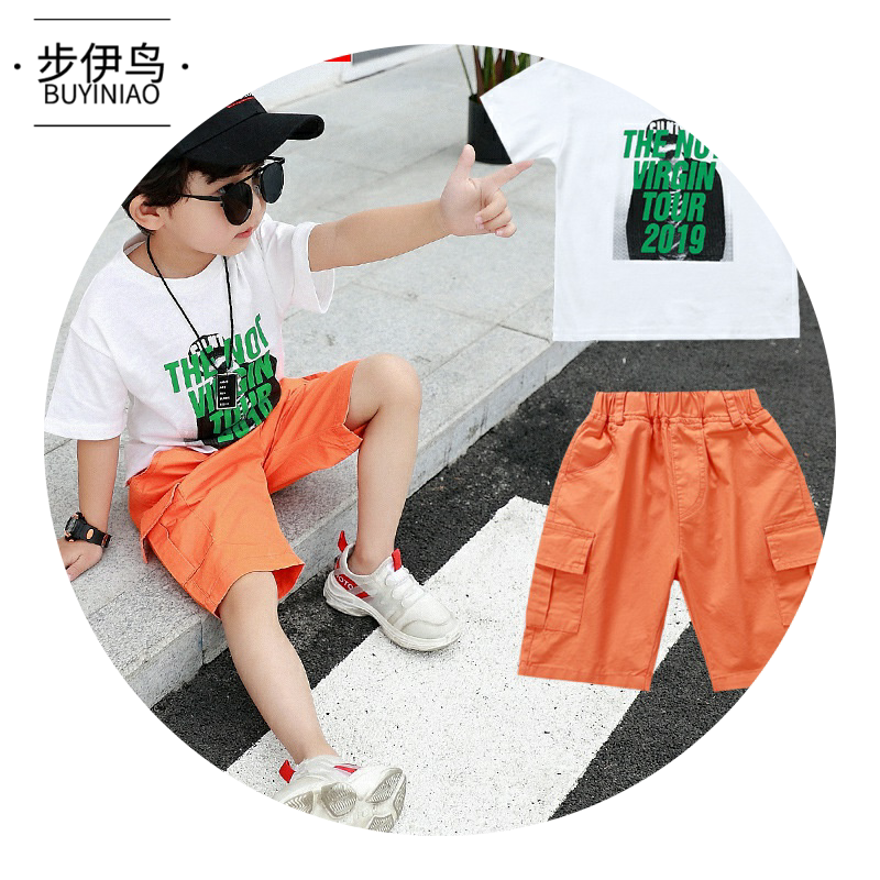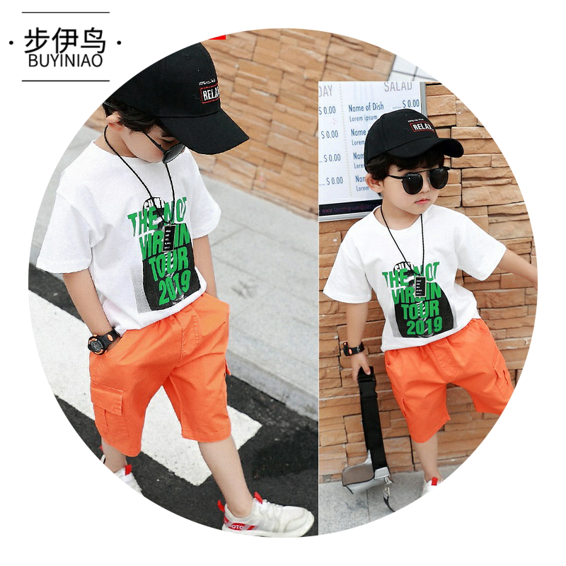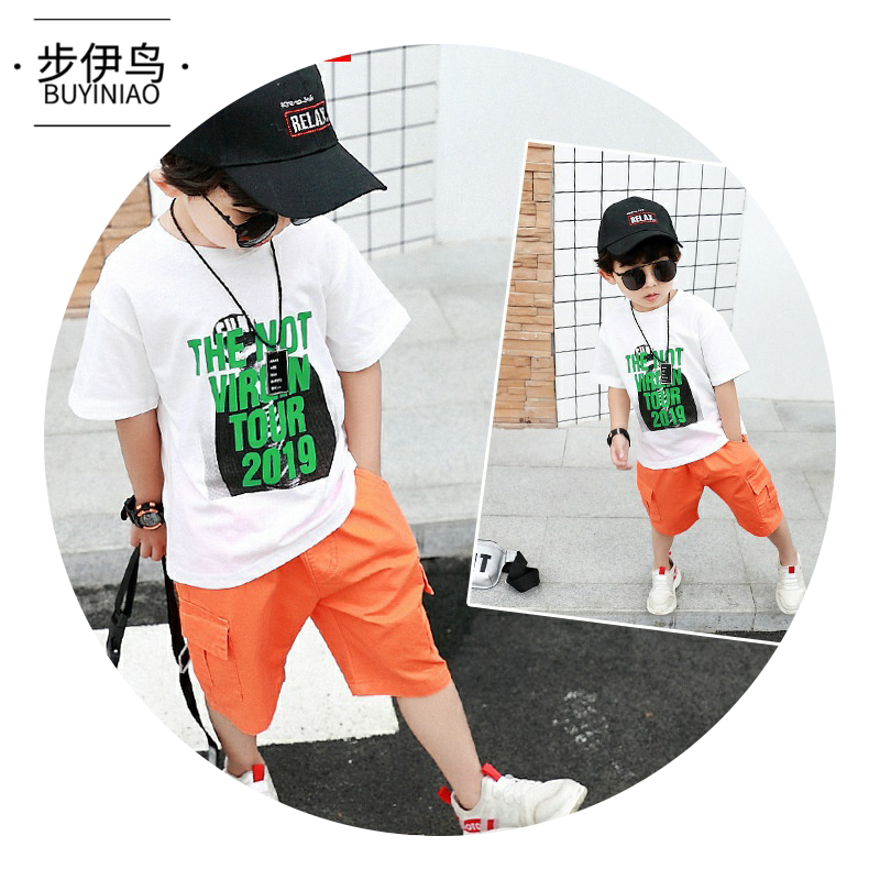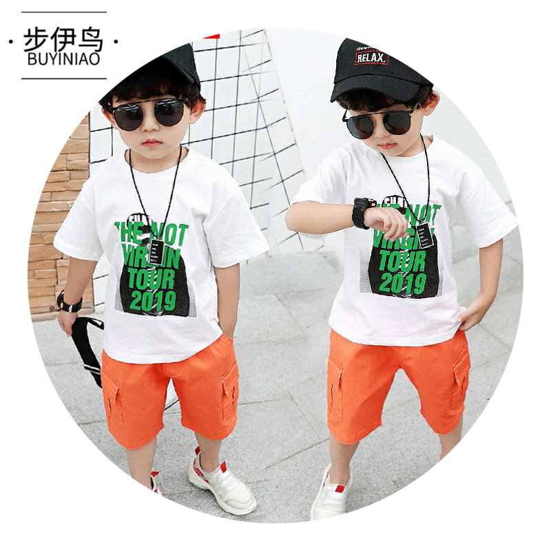 步伊鸟 Летняя одежда, спортивный костюм для мальчиков, детские шорты, 2020 года, популярно в интернете, в западном стиле, короткий рукав