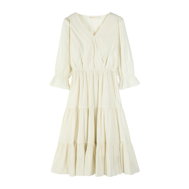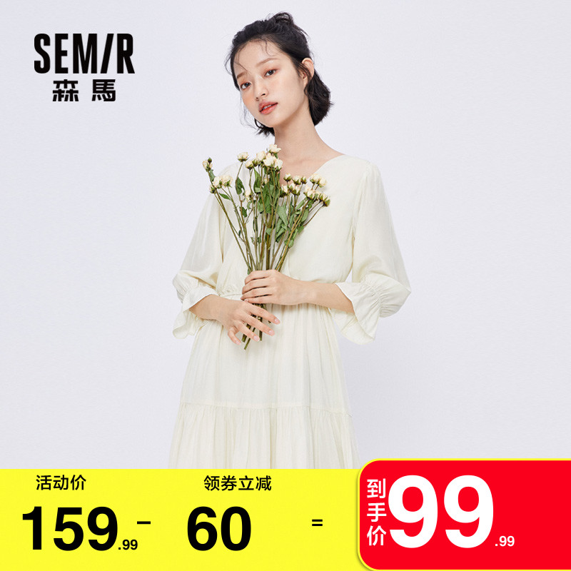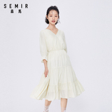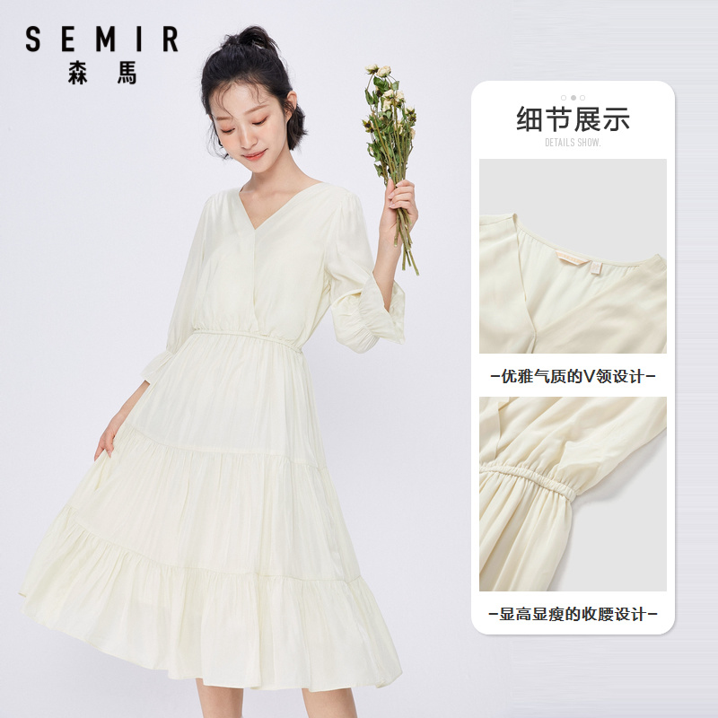 Semir, весеннее платье, приталенный длинный милый корсет, юбка в складку, коллекция 2021, тренд сезона, V-образный вырез, средней длины