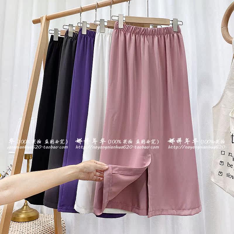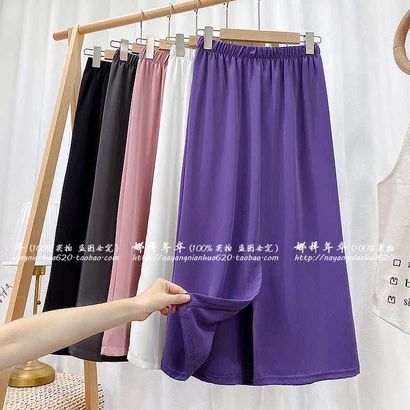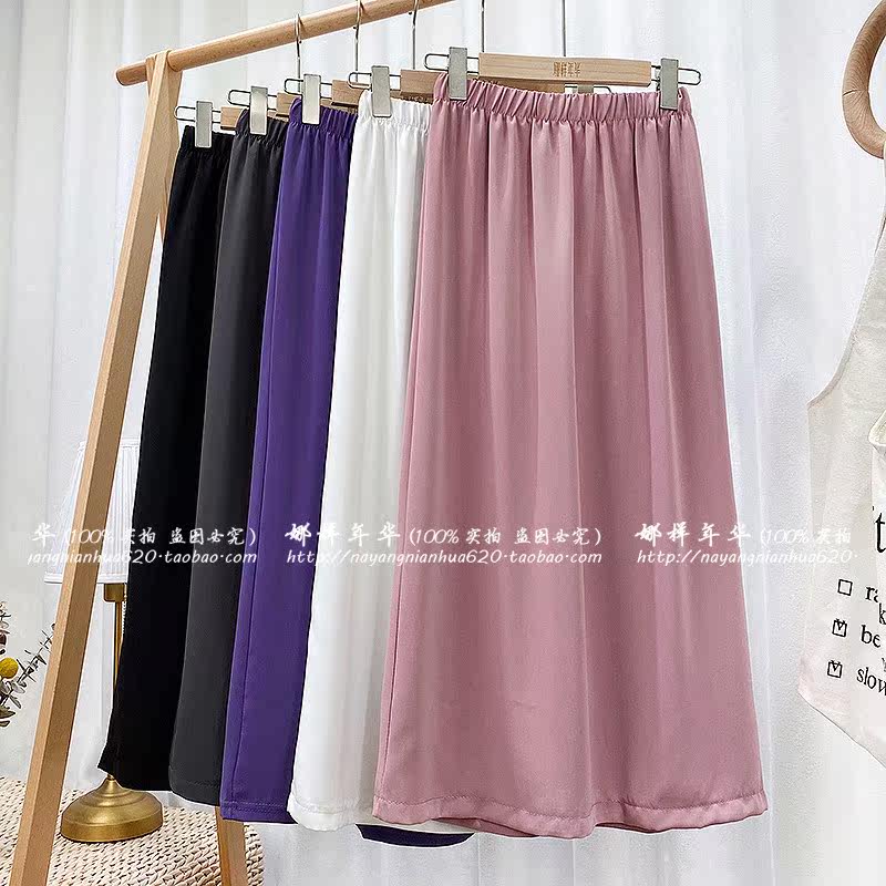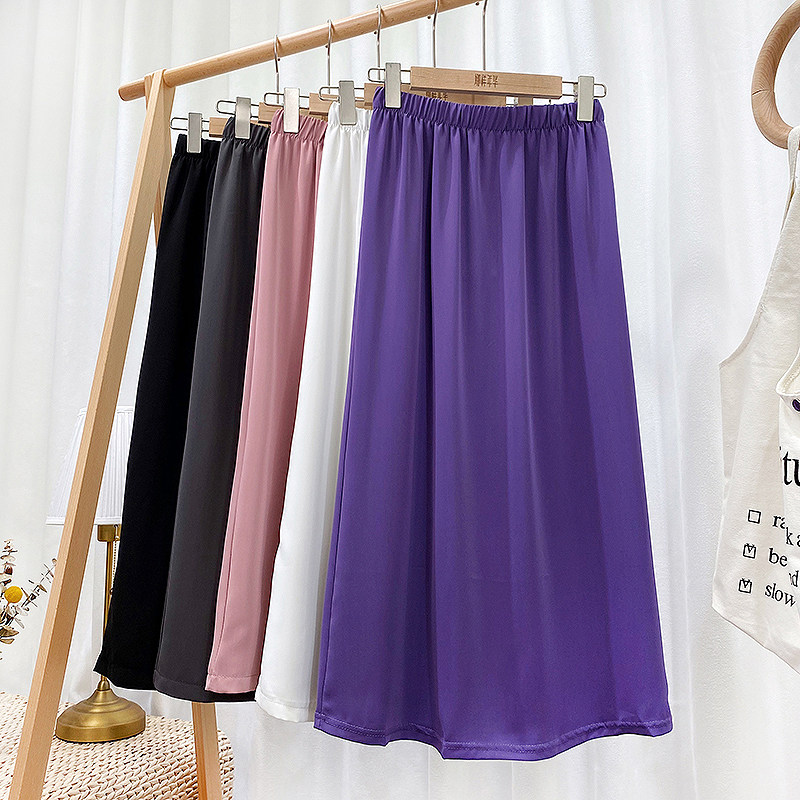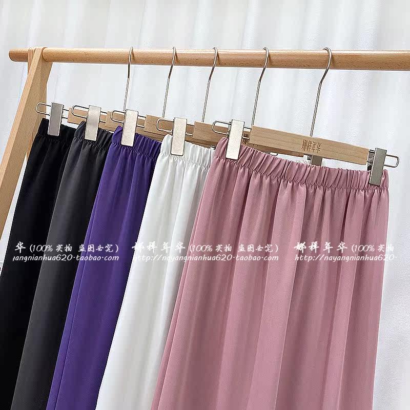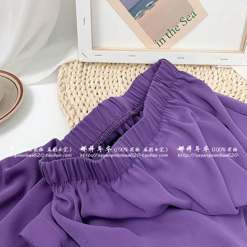 Сиреневая шифоновая длинная тонкая юбка, высокая талия, средней длины, А-силуэт
