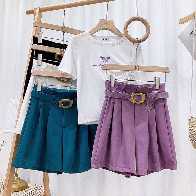 Шелковый костюм, шорты, штаны, высокая талия, свободный крой