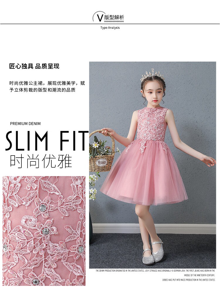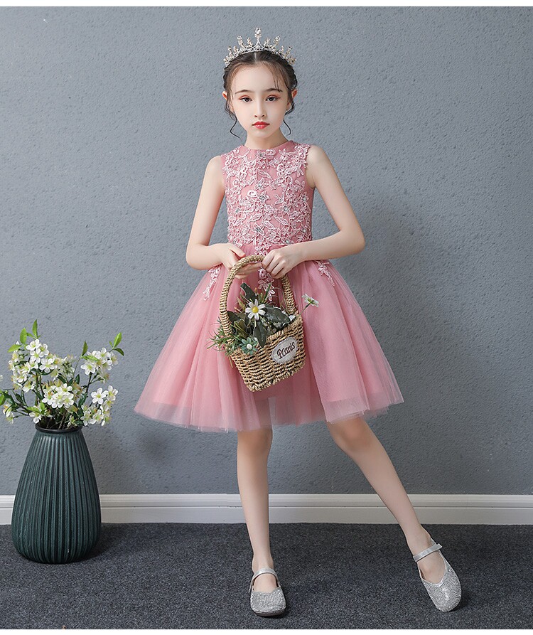 Детский наряд маленькой принцессы, свадебное платье, розовый наряд для музыкальных выступлений, в западном стиле