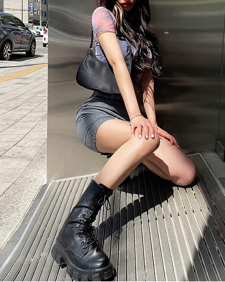 Martens, летний товар, черные цветные ботинки, средней длины