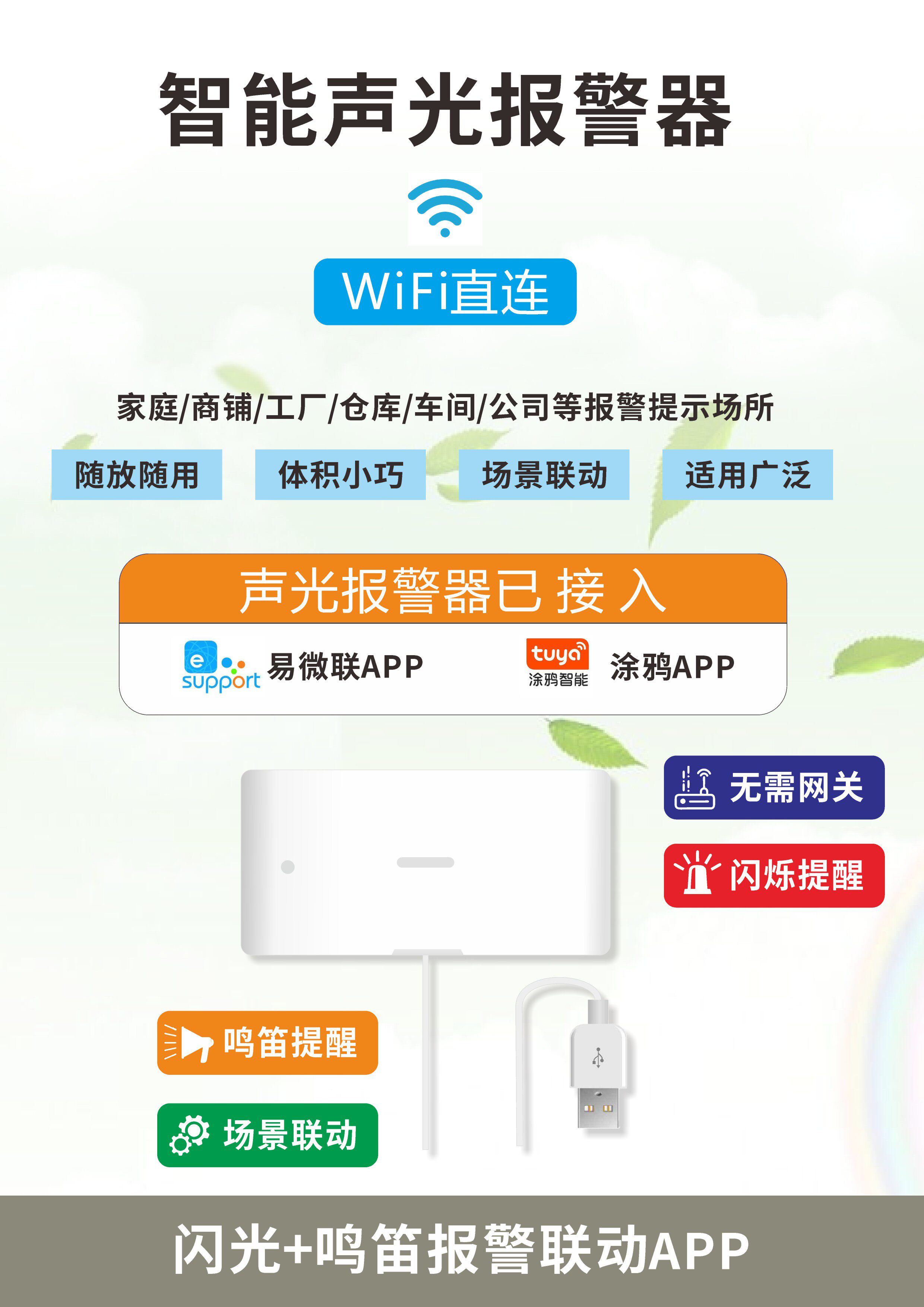 Подключен к Yiwei Lian Tuya Wi-Fi, звуковая и световая сигнализация, управление свистком, нет необходимости во флэш-напоминании о шлюзе.