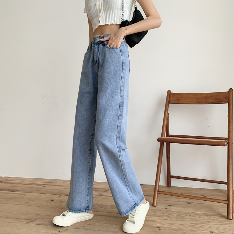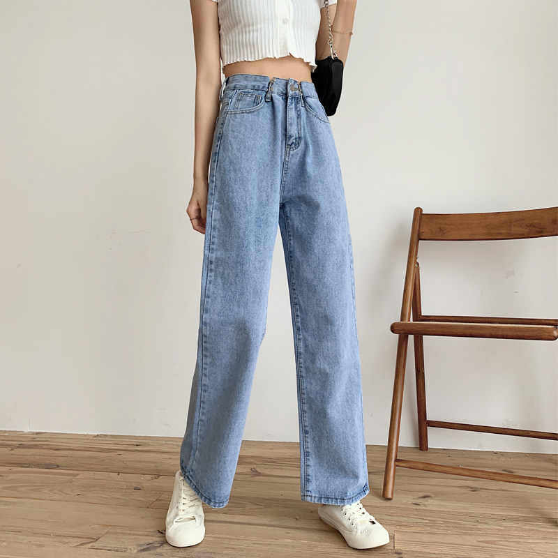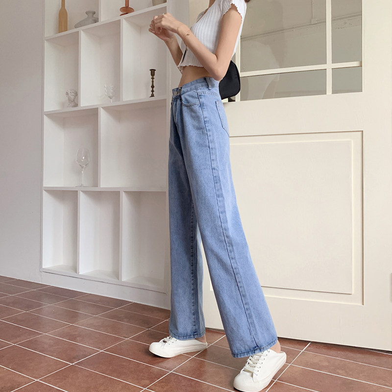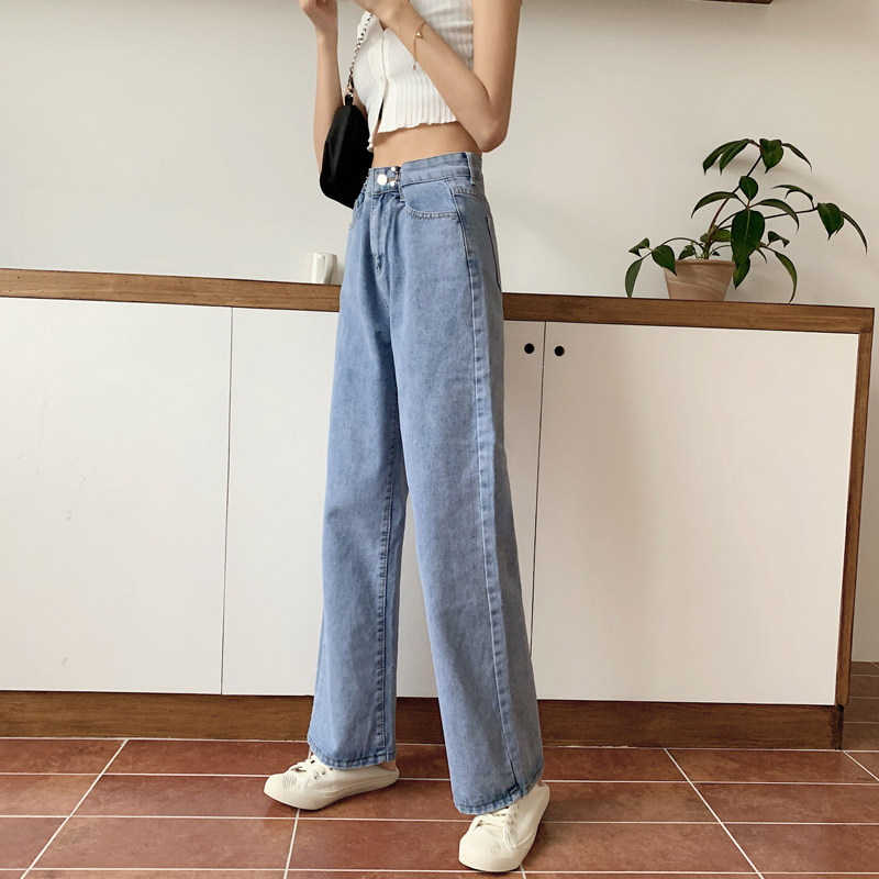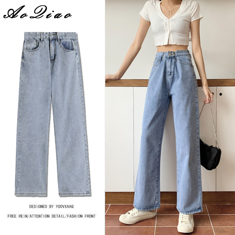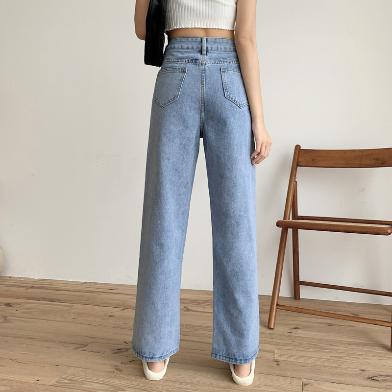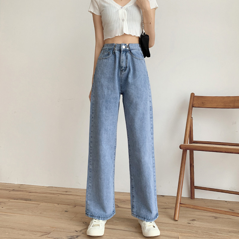 Приталенные светлые тонкие осенние джинсы, штаны, коллекция 2022, оверсайз, высокая талия, свободный прямой крой