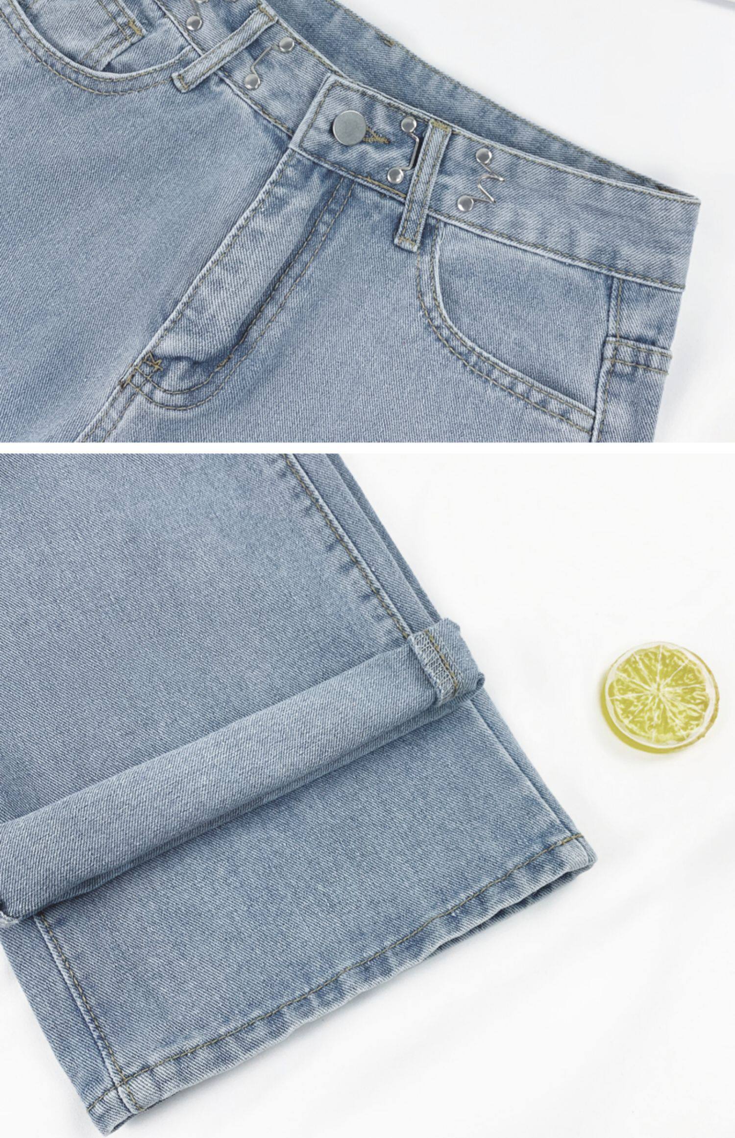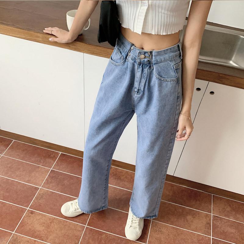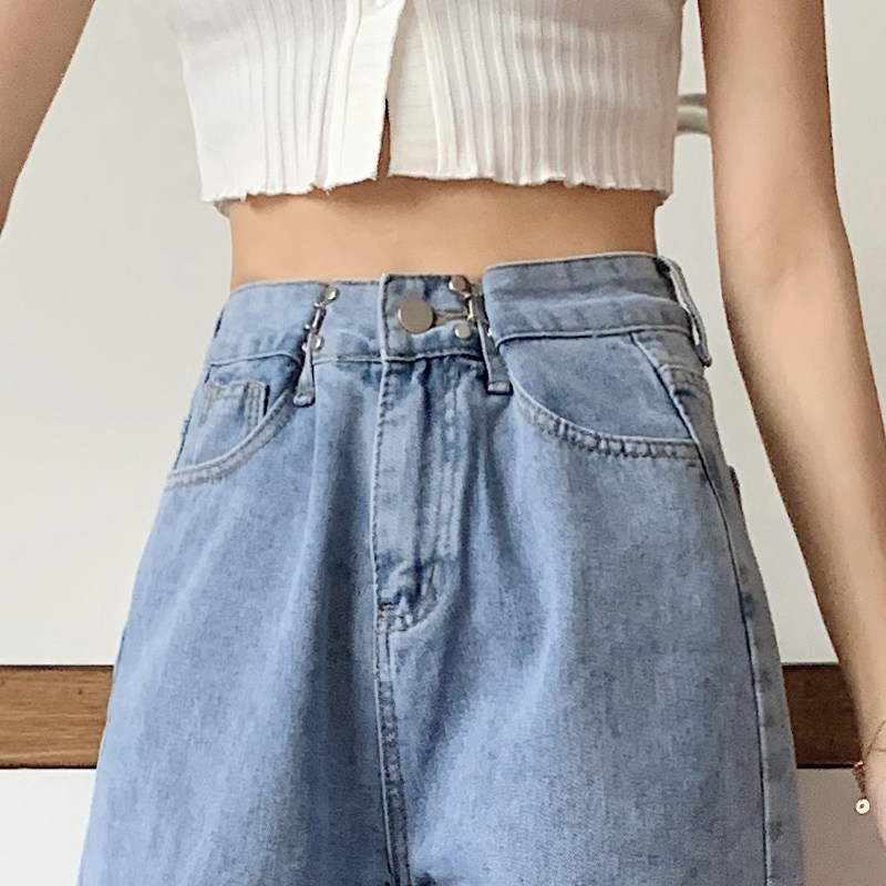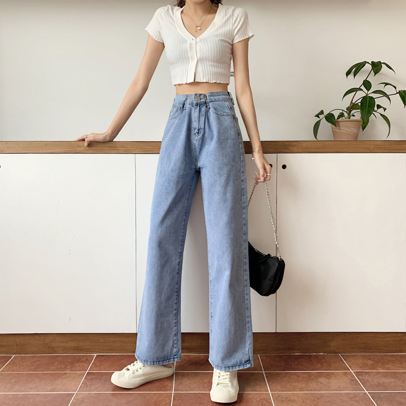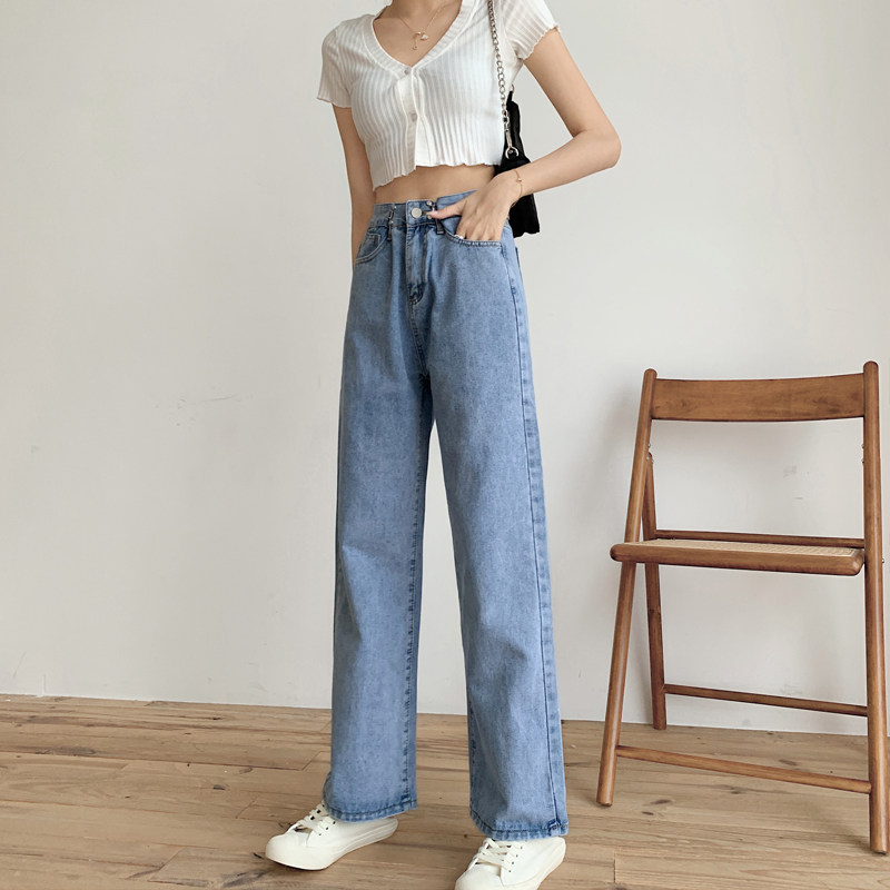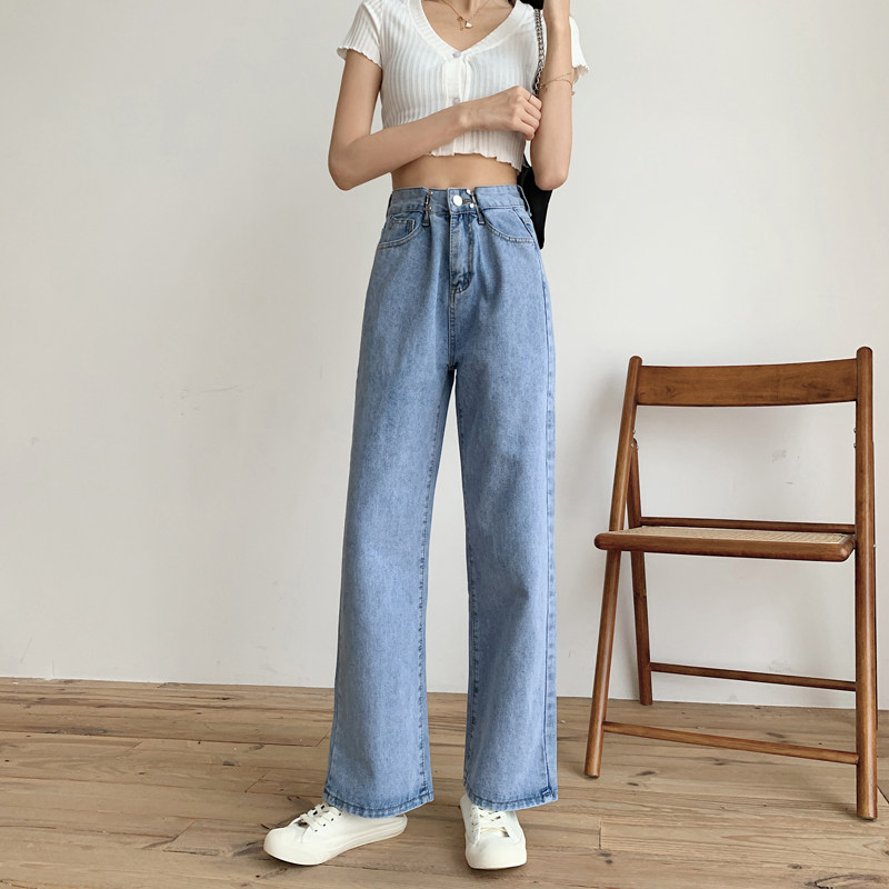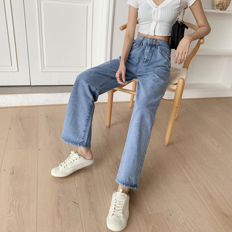 Приталенные светлые тонкие осенние джинсы, штаны, коллекция 2022, оверсайз, высокая талия, свободный прямой крой