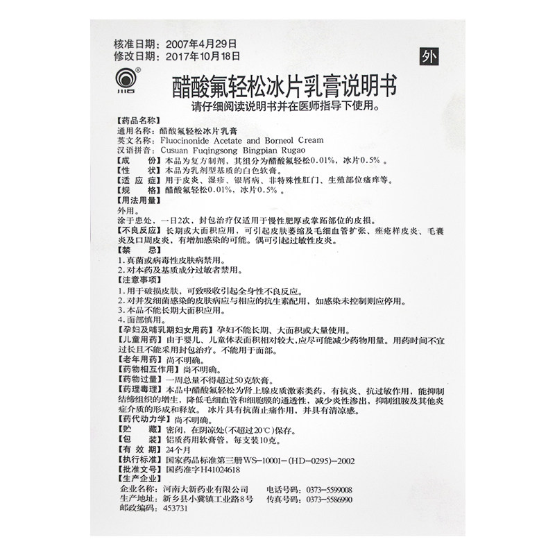 川石 Уксусная кислота фторид Borneol Cream 10G*1 кусок/коробка дерматита экзема Псориаз Псориаз.