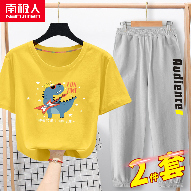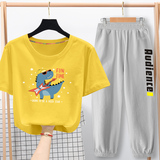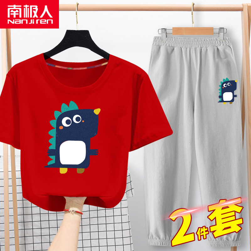 Летняя одежда, комплект, красный динозавр, детская пижама, коллекция 2021