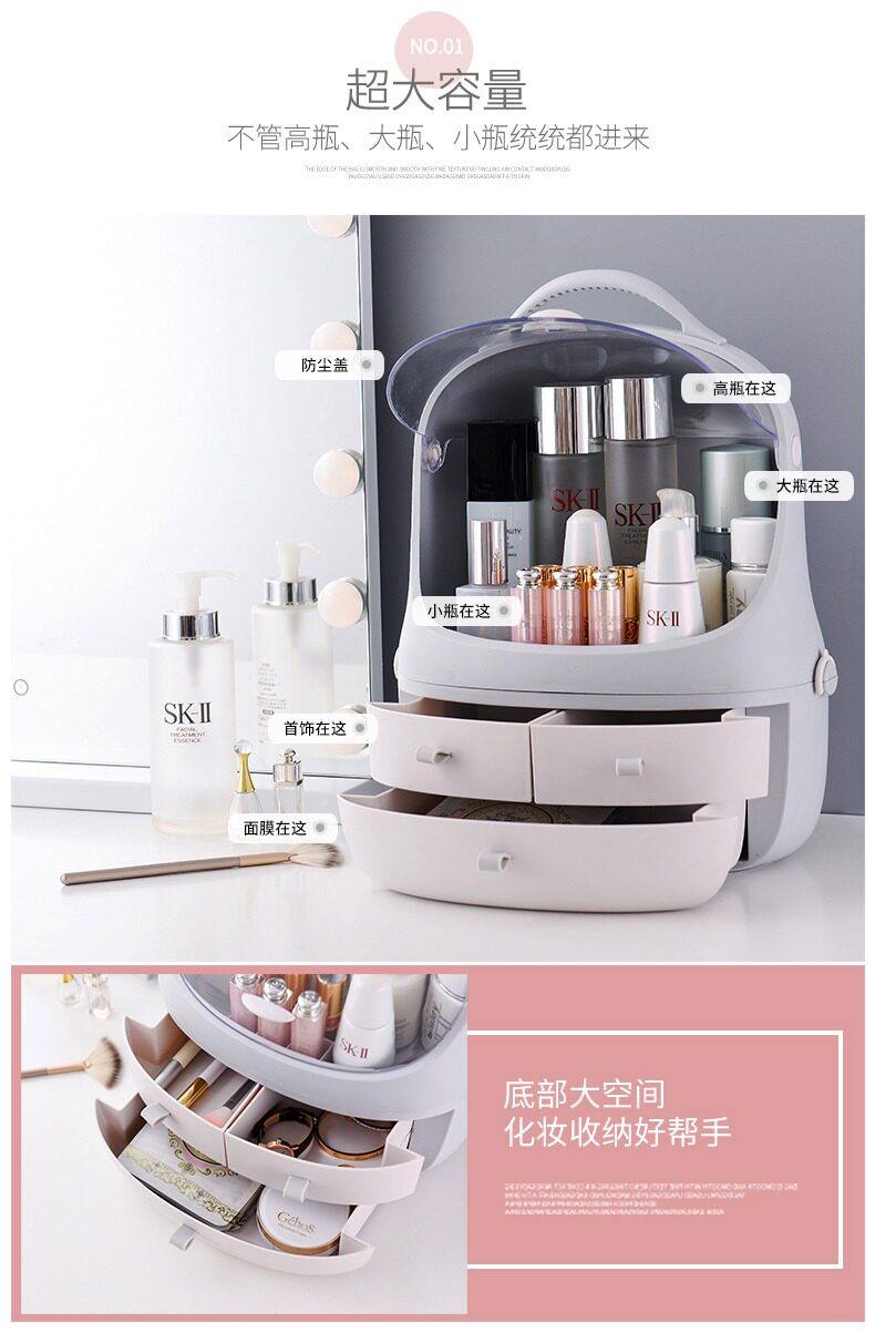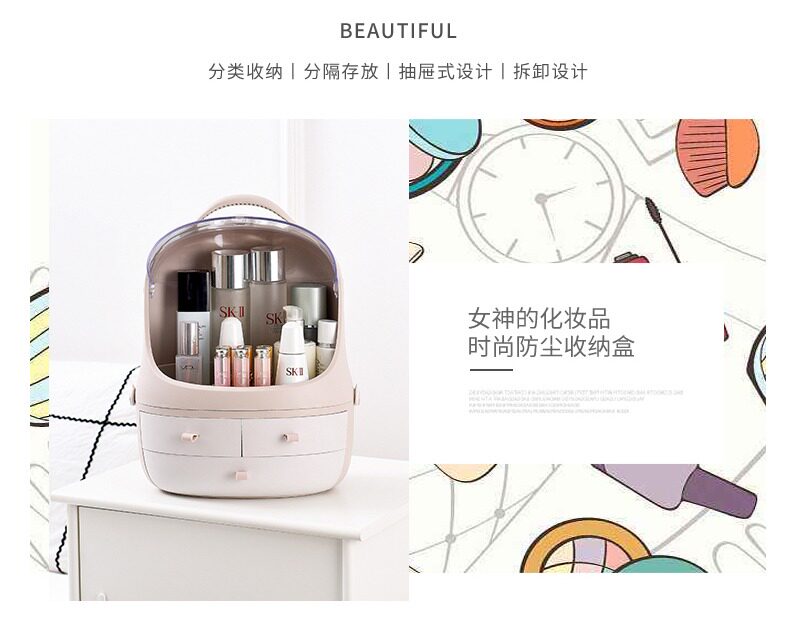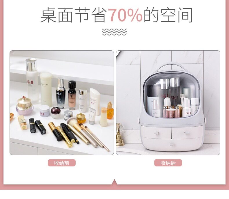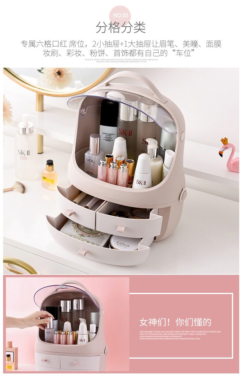Пылезащитная косметическая коробка для хранения, настольный туалетный столик для ухода за кожей, помада, коробка для косметики, щетка, популярно в интернете
