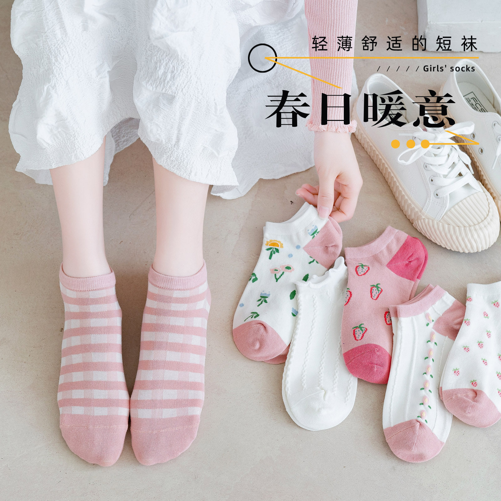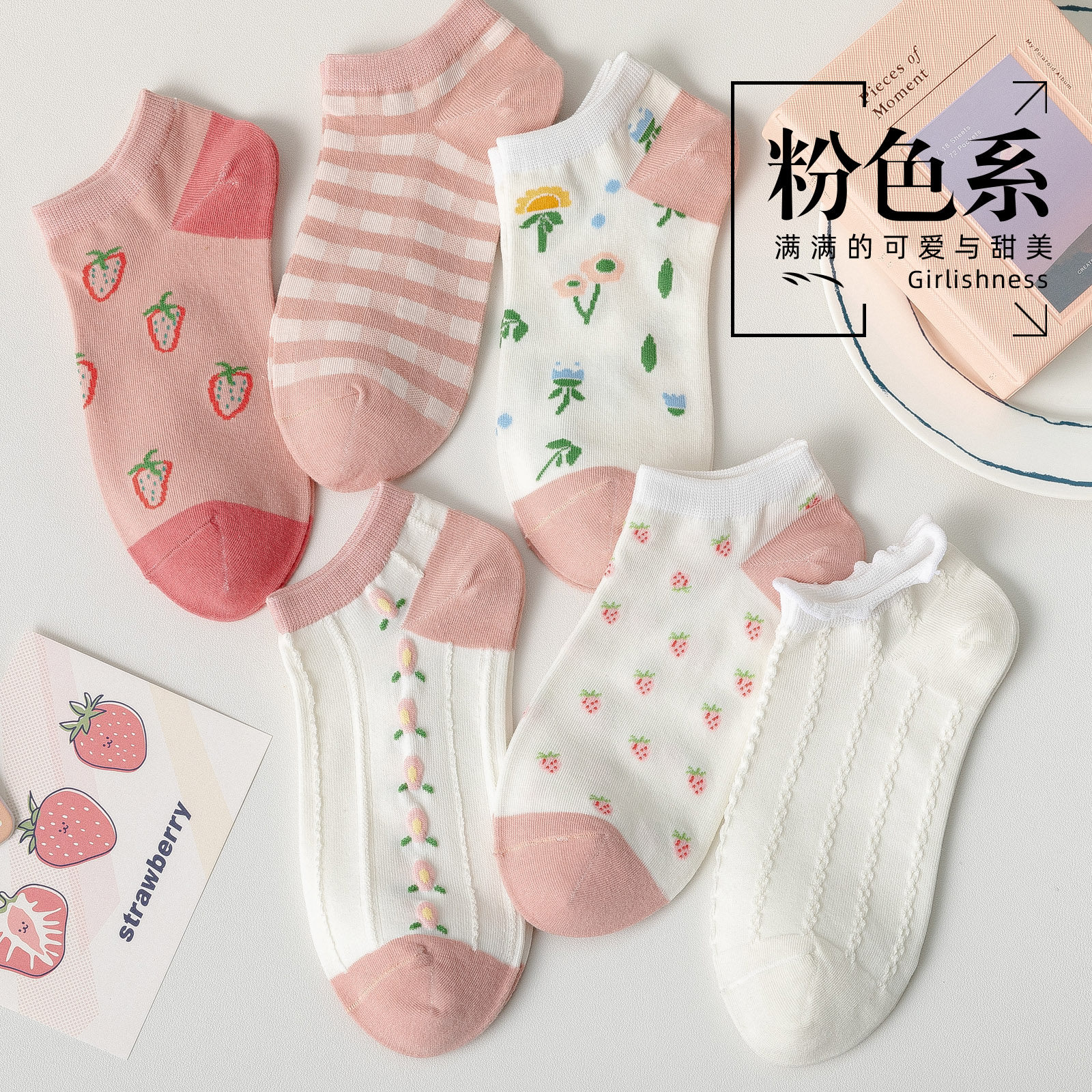 Tide, розовые тонкие модные дышащие белые японские летние носки