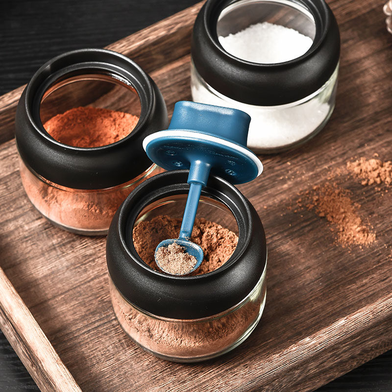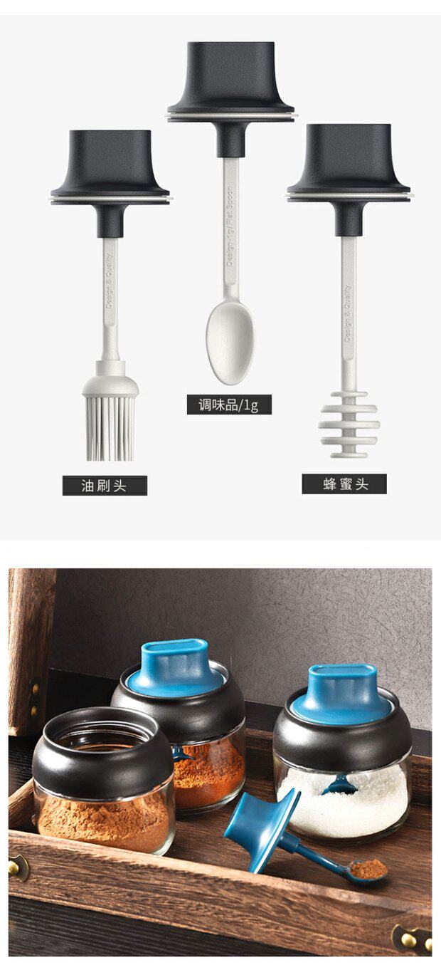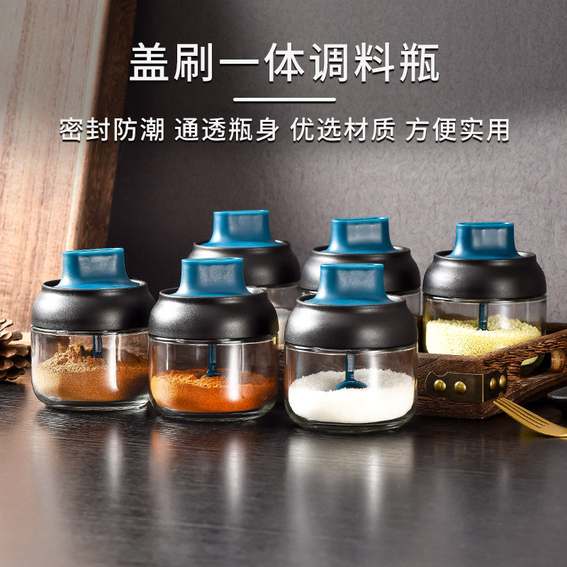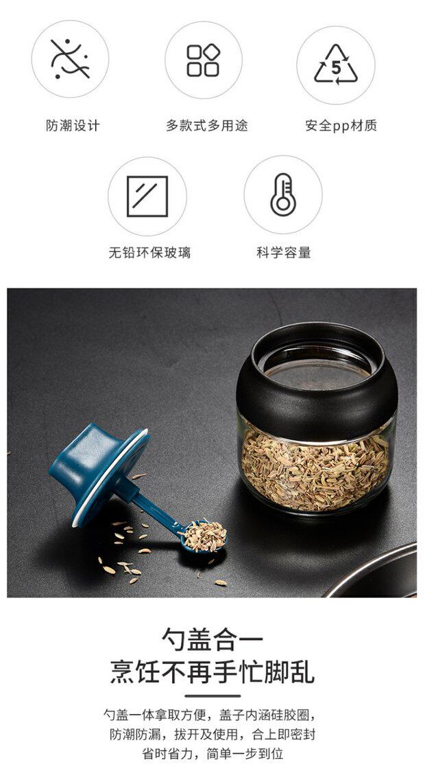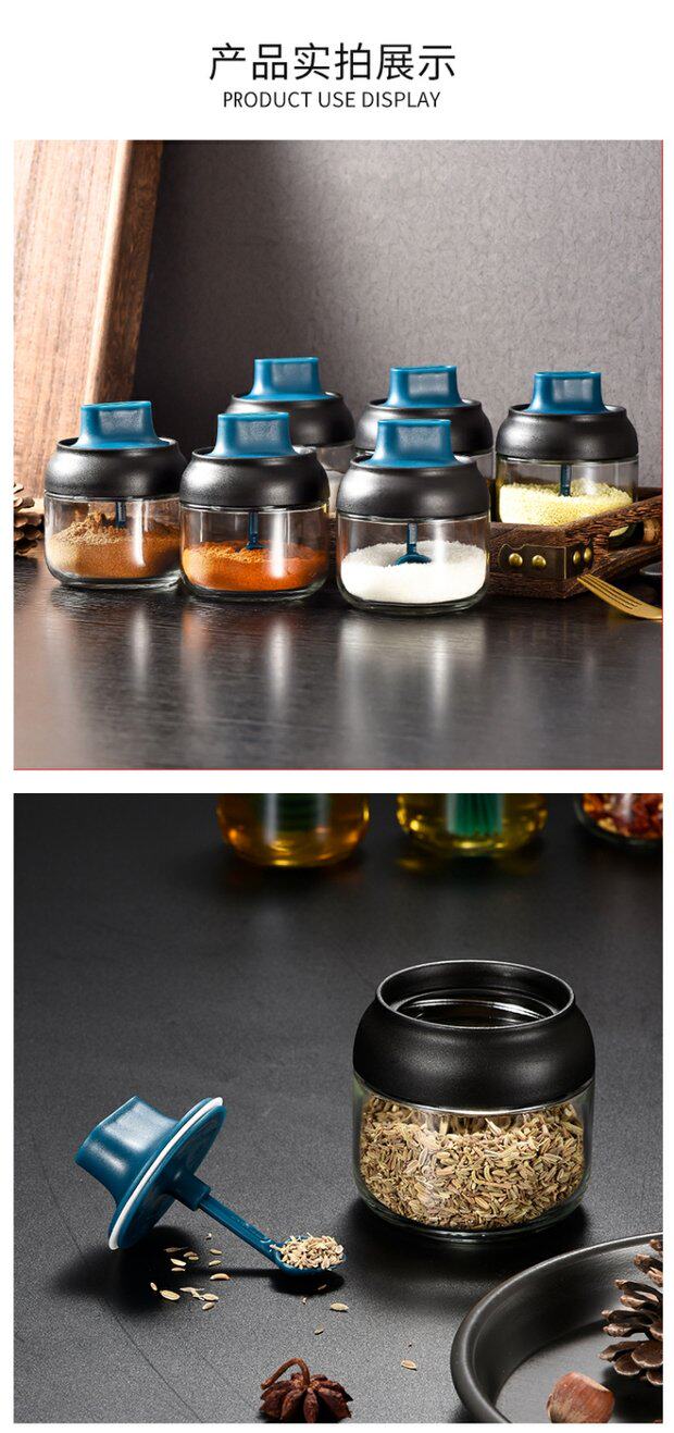Японский стиль влагая -надежная стеклянная крышка ложки встроенная приправа кухонная бутылка приправа приправа приправа соленый сахар монозодий глюттайда приправляя бутылка приправа приправы