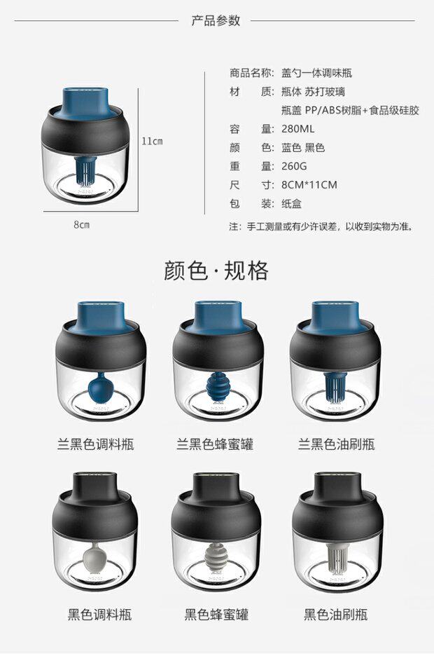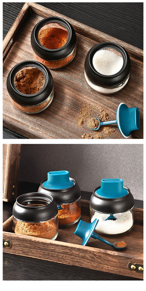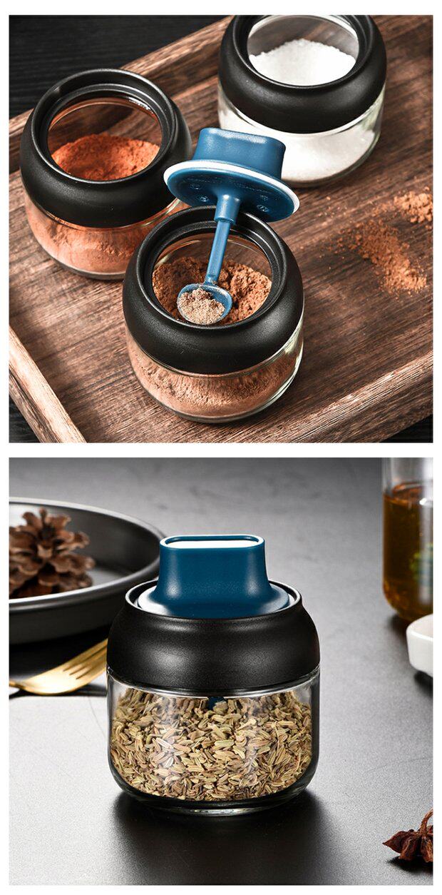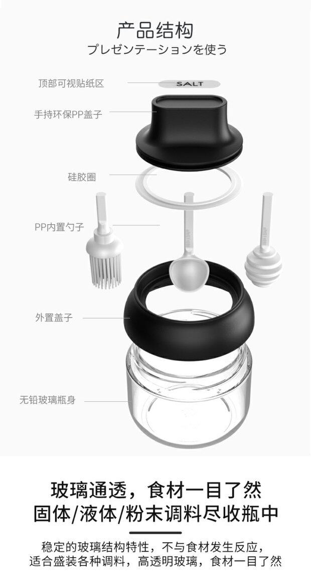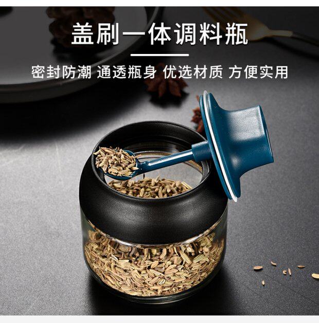 Японский стиль влагая -надежная стеклянная крышка ложки встроенная приправа кухонная бутылка приправа приправа приправа соленый сахар монозодий глюттайда приправляя бутылка приправа приправы