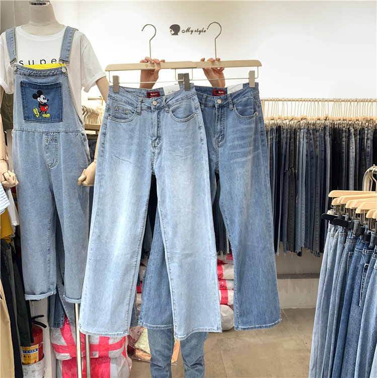 Летние тонкие прямые свободные джинсы для отдыха, штаны, высокая талия, оверсайз