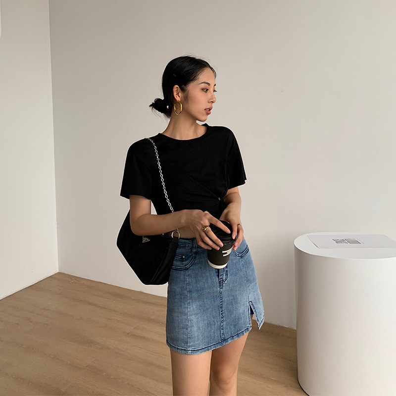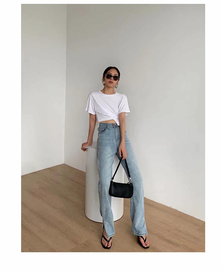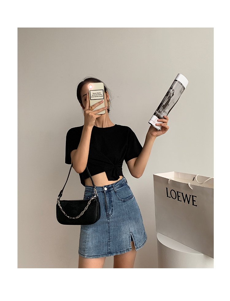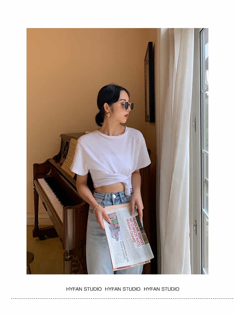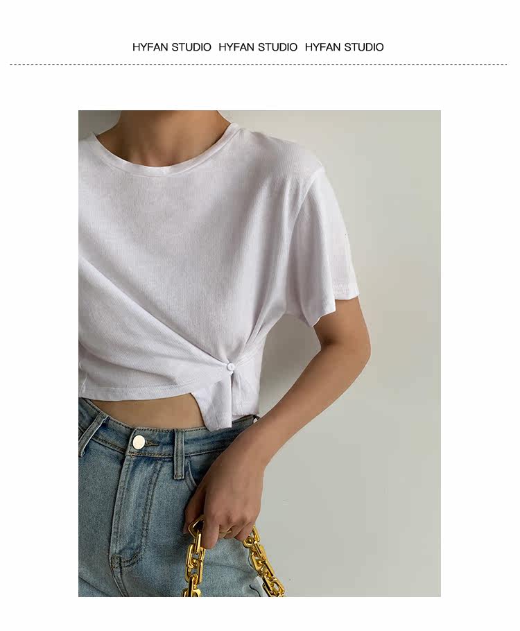 Белая короткая дизайнерская футболка, короткий рукав, высокая талия, 2020, тренд сезона