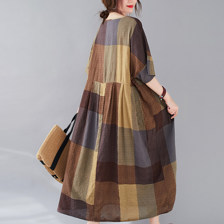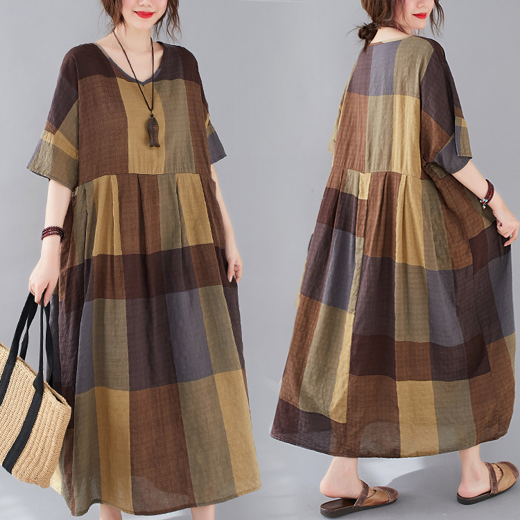 Летняя длинная юбка, платье, 2020, большой размер, V-образный вырез, подходит для полных девушек, свободный крой, из хлопка и льна