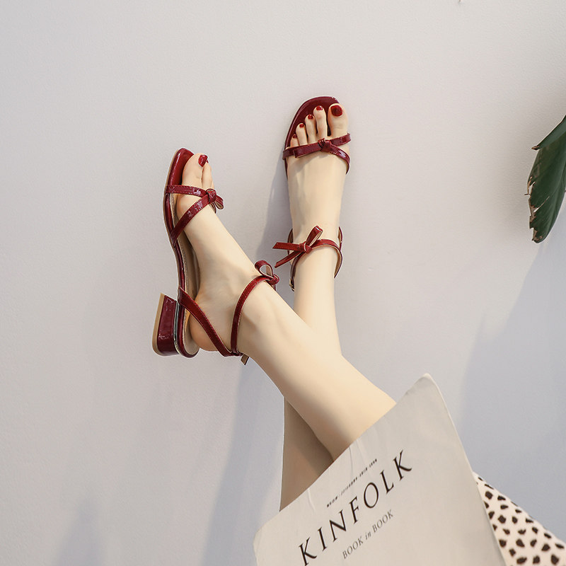 Сандалии, универсальная красная плоская подошва обувь с бантиком, 2021 года, 3см