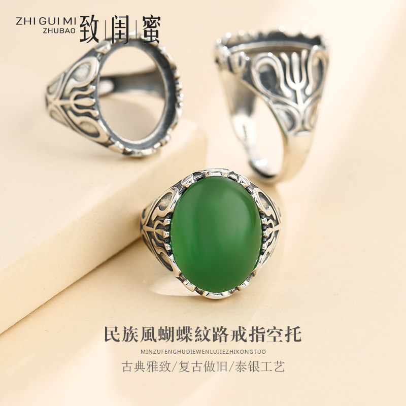 Бирюзовая янтарная ретро инкрустация камня подходит для мужчин и женщин, красное обручальное кольцо, серебро 925 пробы