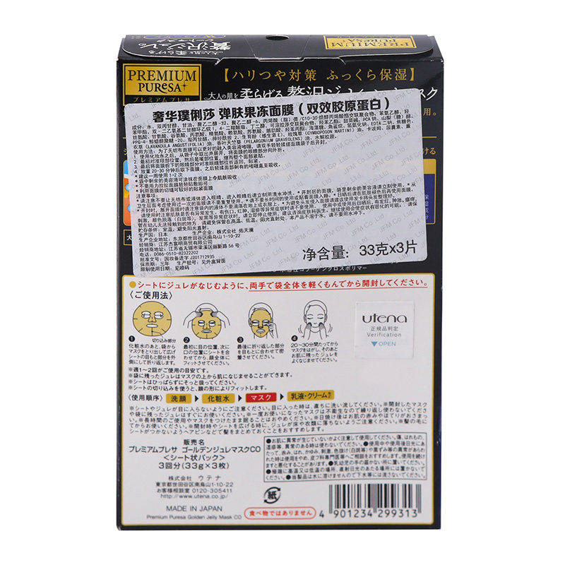 Японская маска для лица, коллаген, 33г, 3 штук