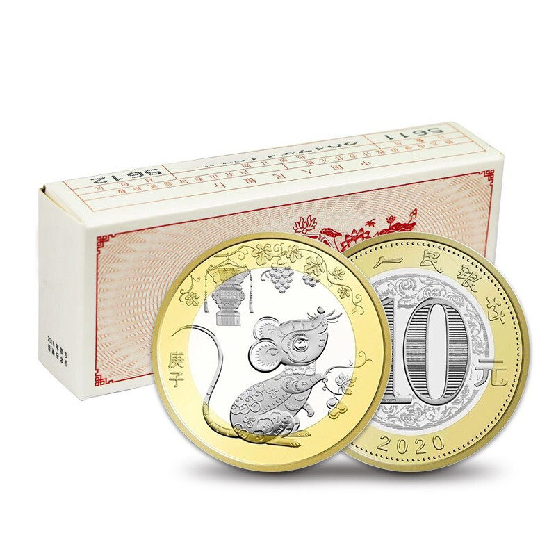 [Банк банка] Мемориальная монета мыши 2020 года Две кольцевая памятная монета Зодиака Две крысы две крысы монеты 100