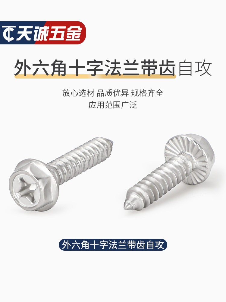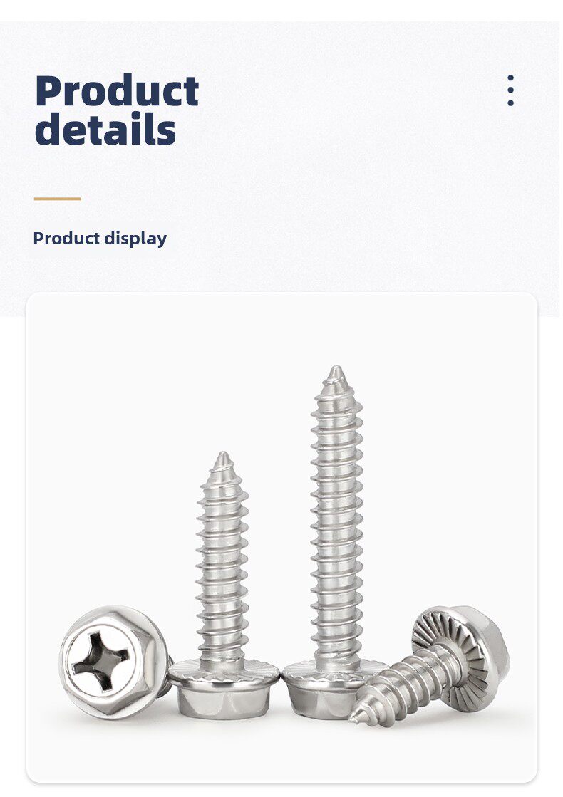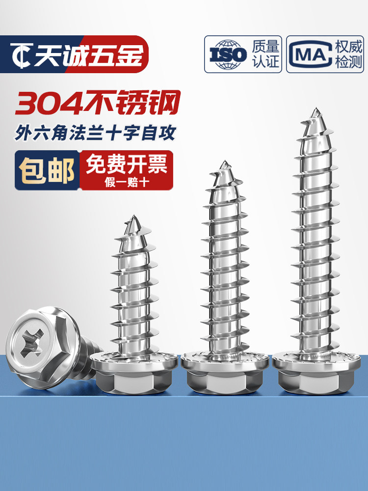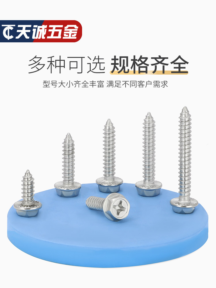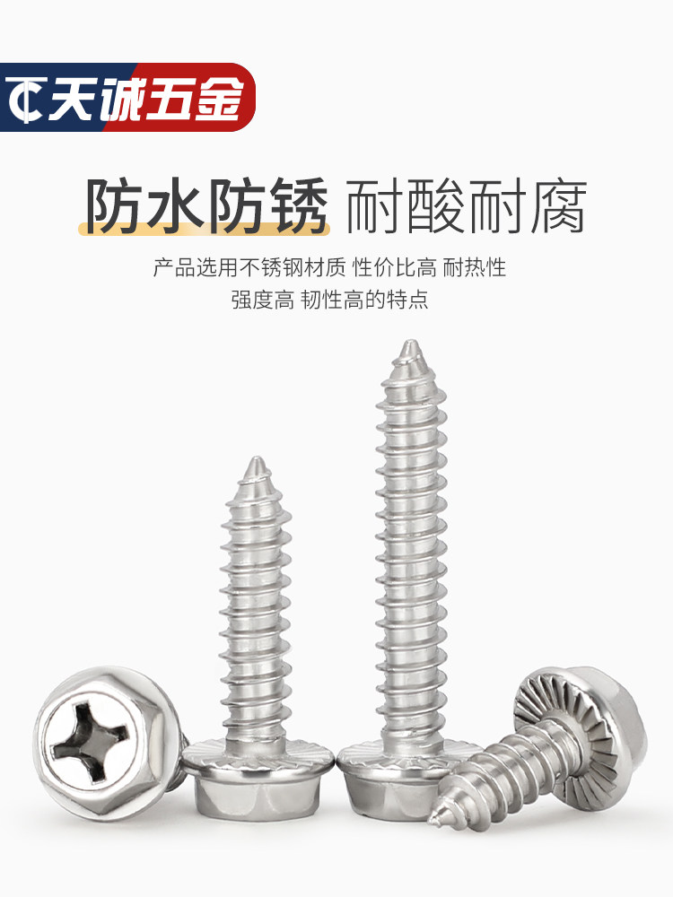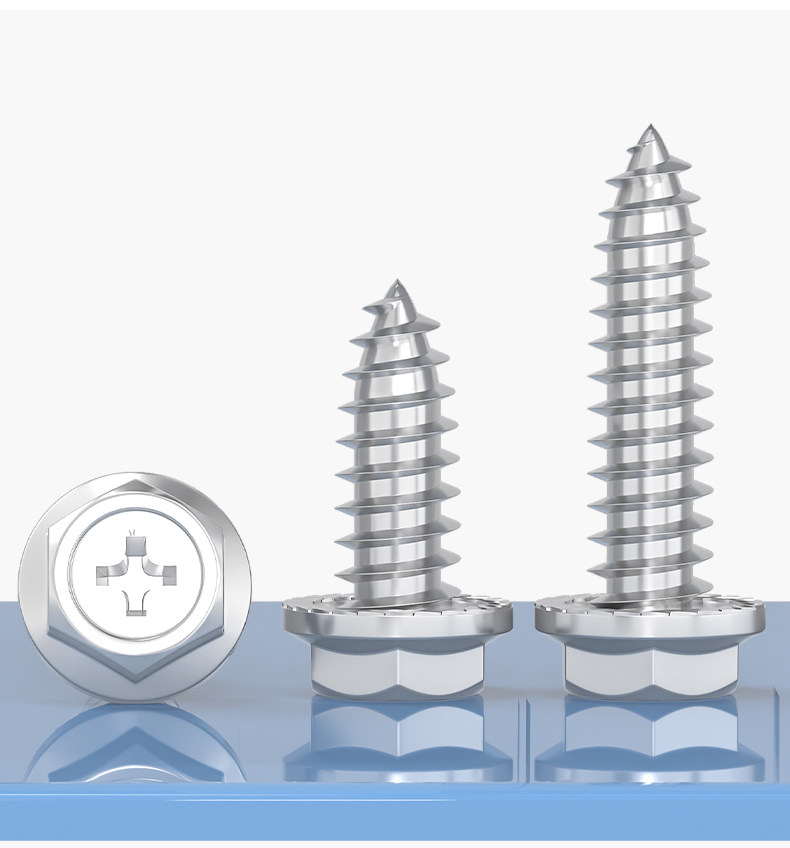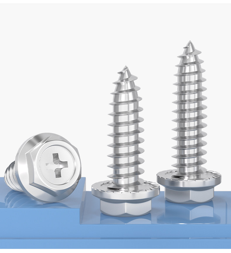 M3M4M5M6 Саморезы из нержавеющей стали 304 с крестообразным шлицем и внешним шестигранным фланцем с заполненными шурупами для дерева, противоскользящие зубья