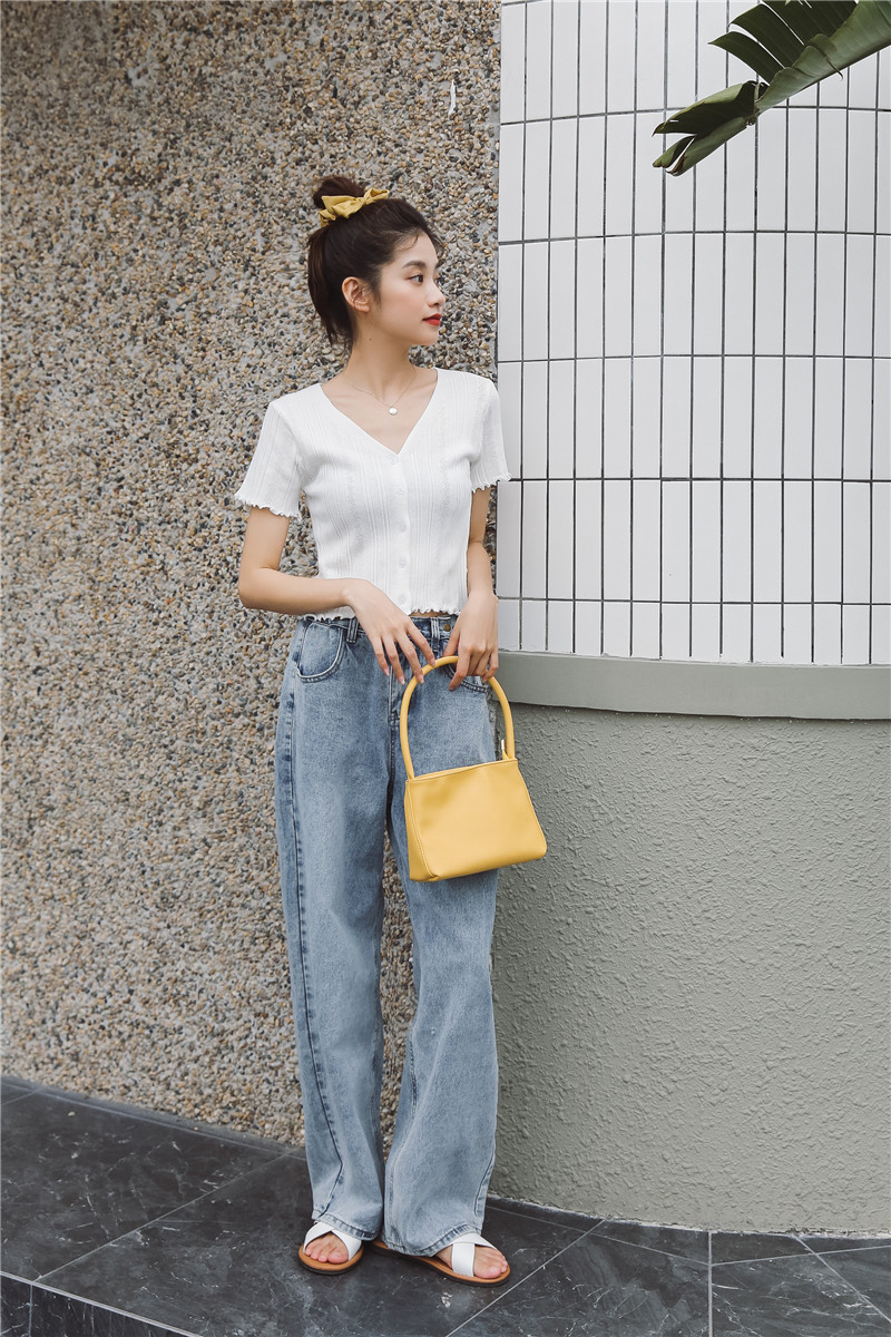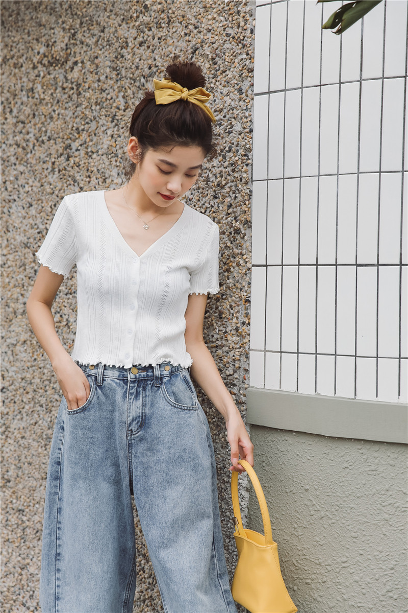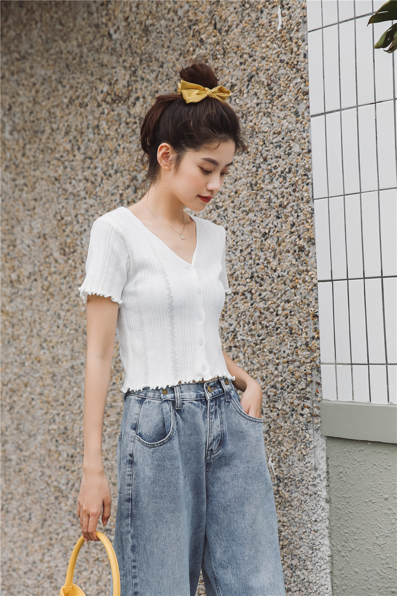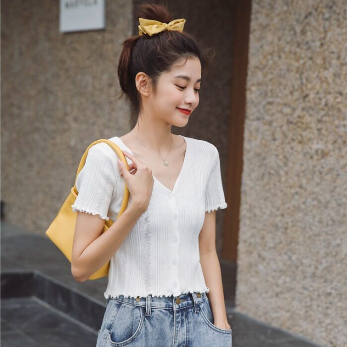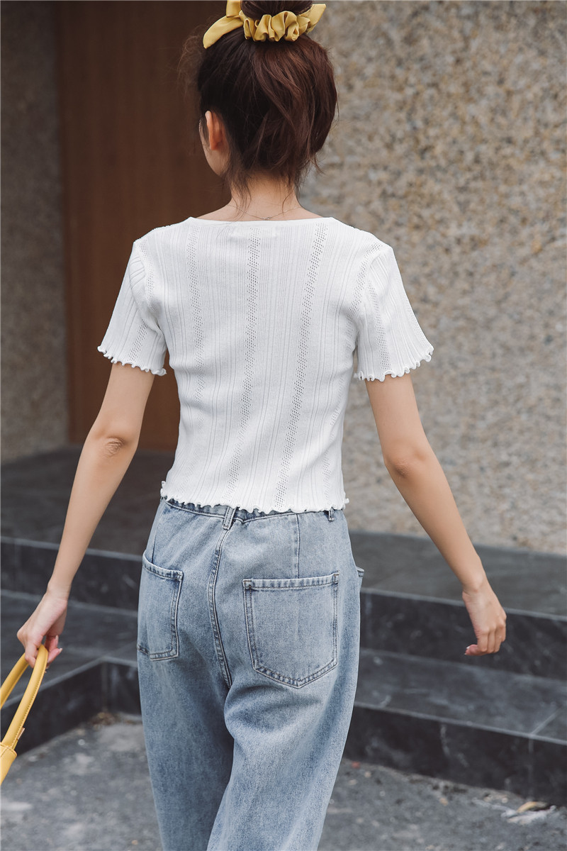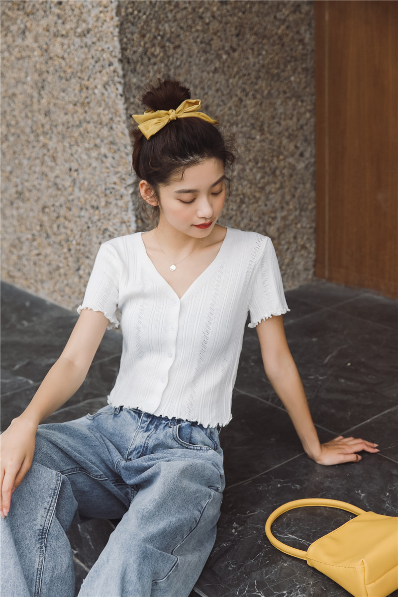 Трикотажный свежий милый сиреневый свитер, короткий рукав