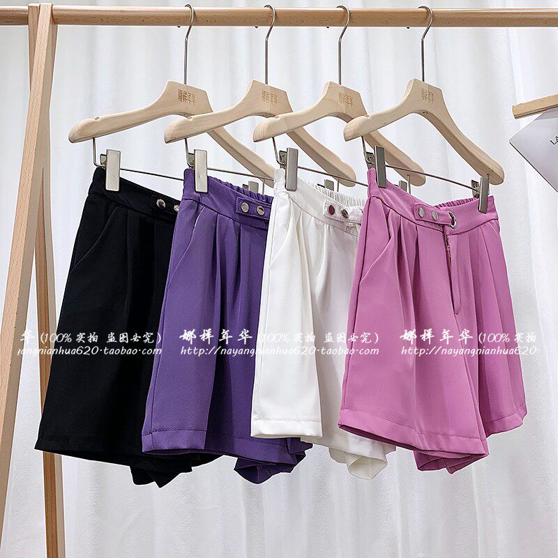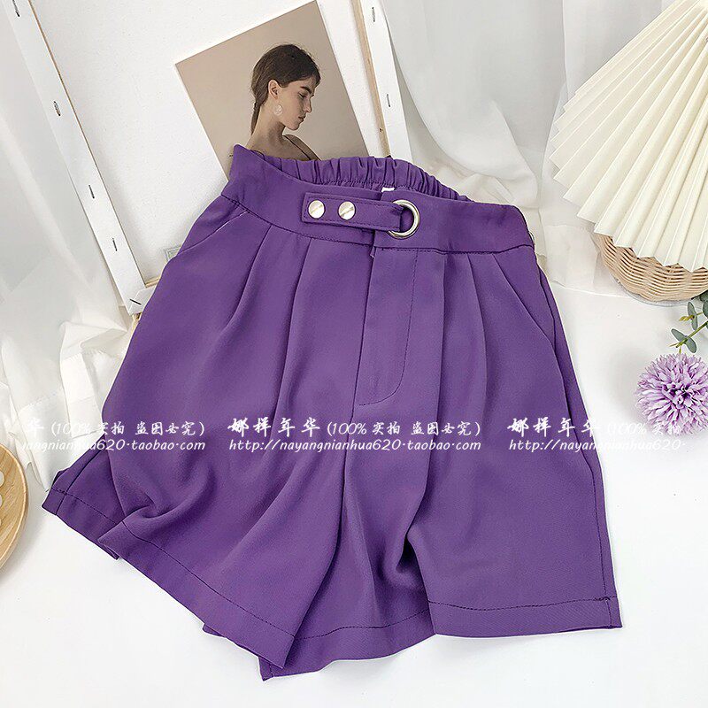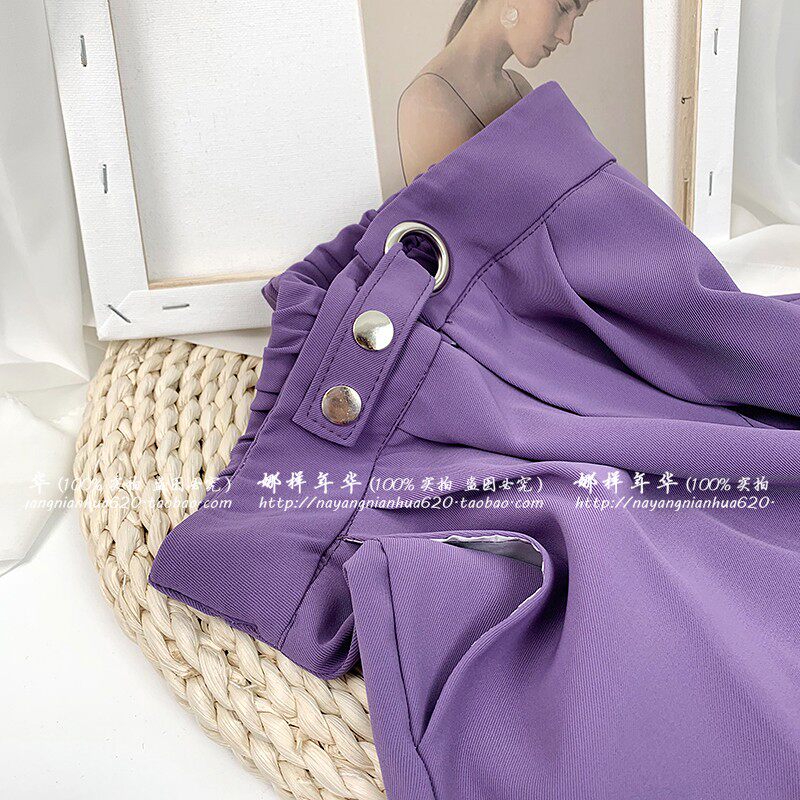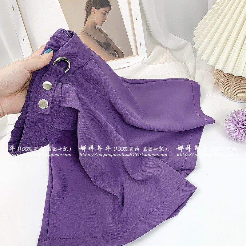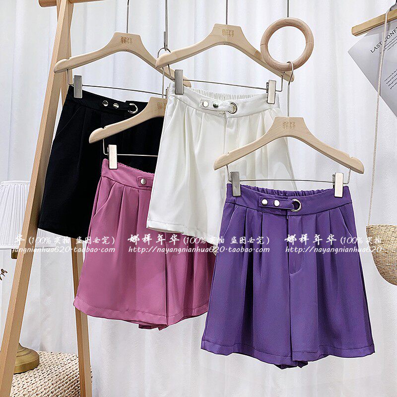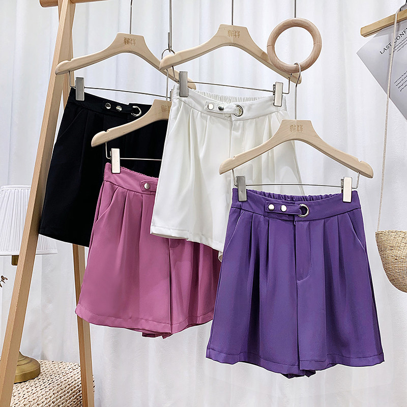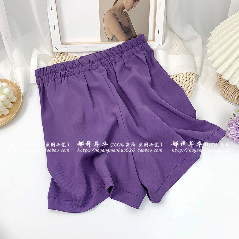 Сиреневый шелковый костюм, шорты, штаны, высокая талия, оверсайз, свободный прямой крой