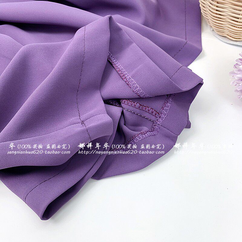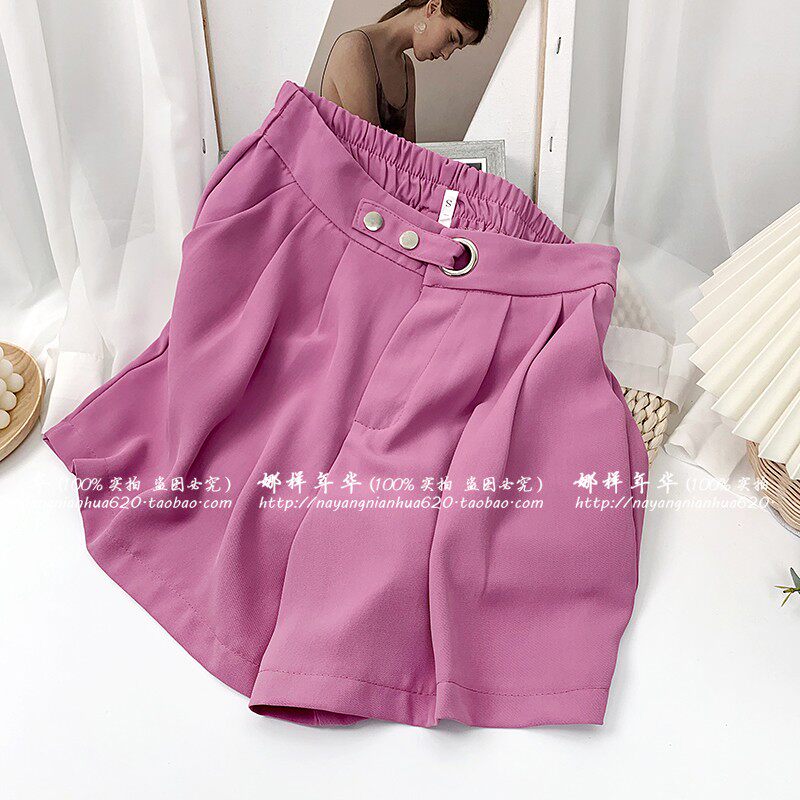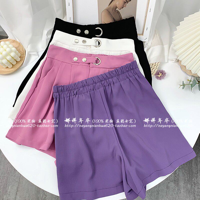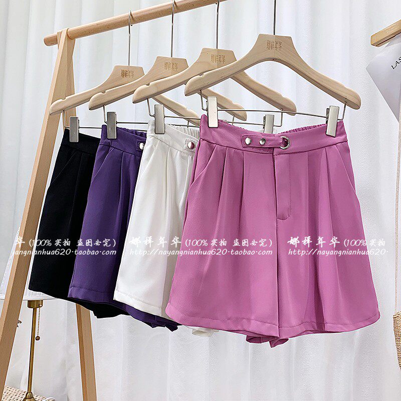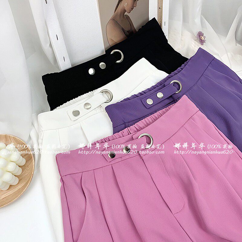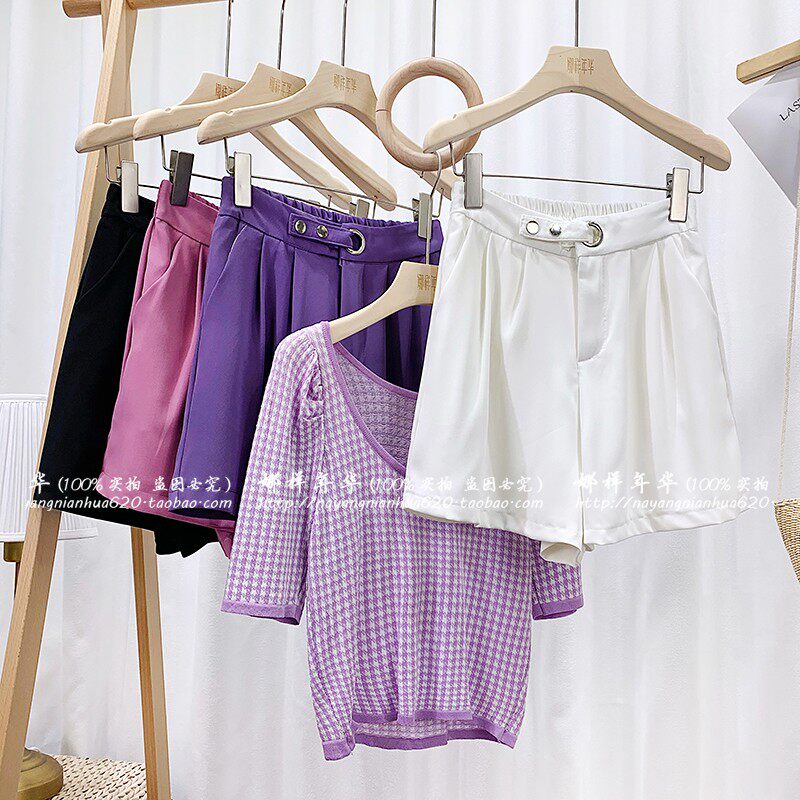 Сиреневый шелковый костюм, шорты, штаны, высокая талия, оверсайз, свободный прямой крой
