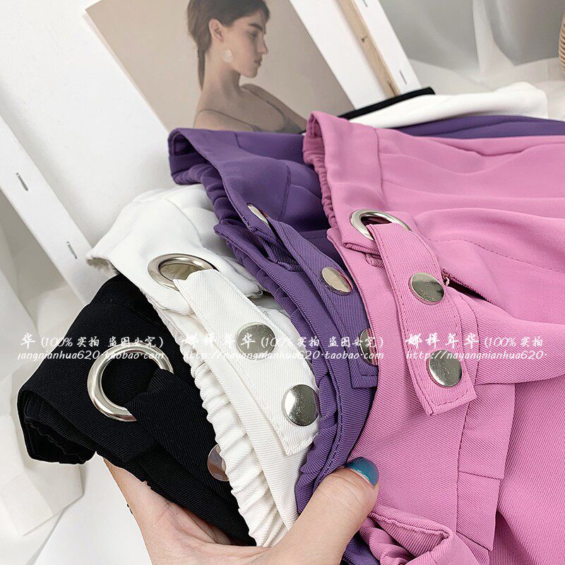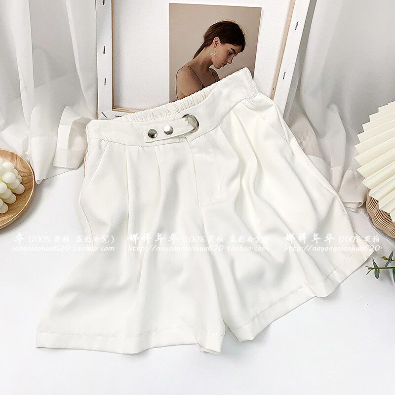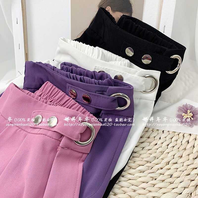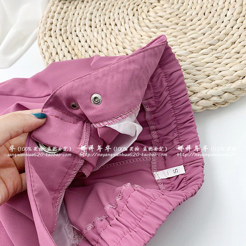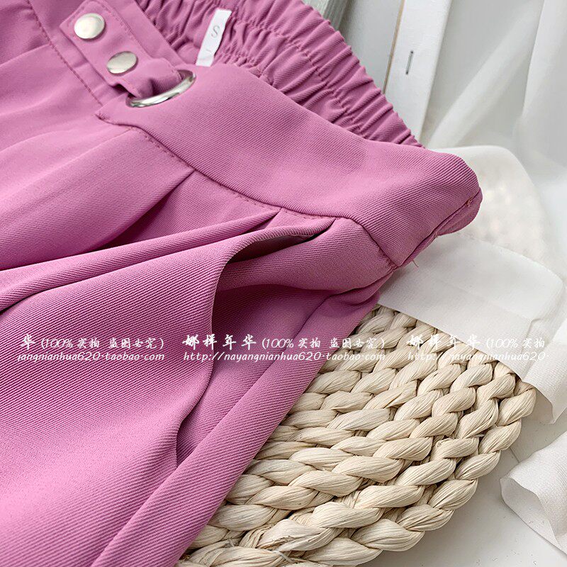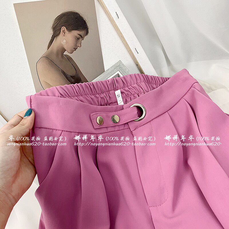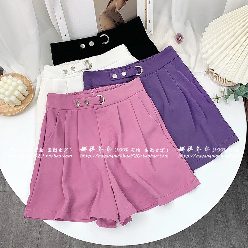 Сиреневый шелковый костюм, шорты, штаны, высокая талия, оверсайз, свободный прямой крой