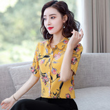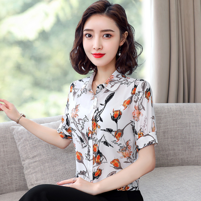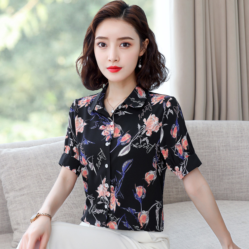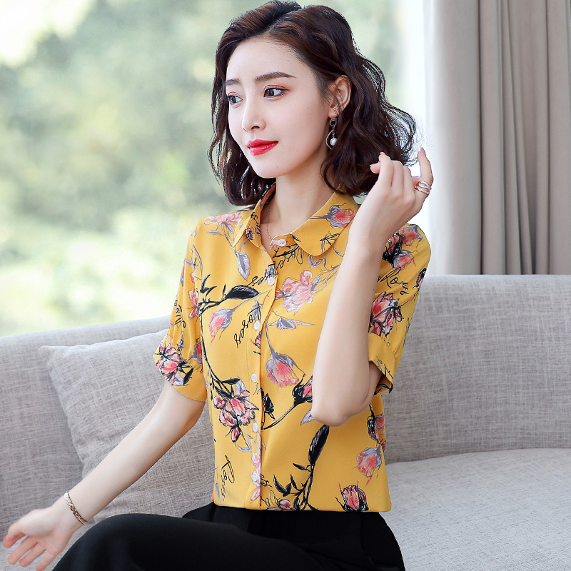 Рубашка, шифоновая модная летняя одежда для отдыха, 2020, цветочный принт, короткий рукав, по фигуре, в западном стиле
